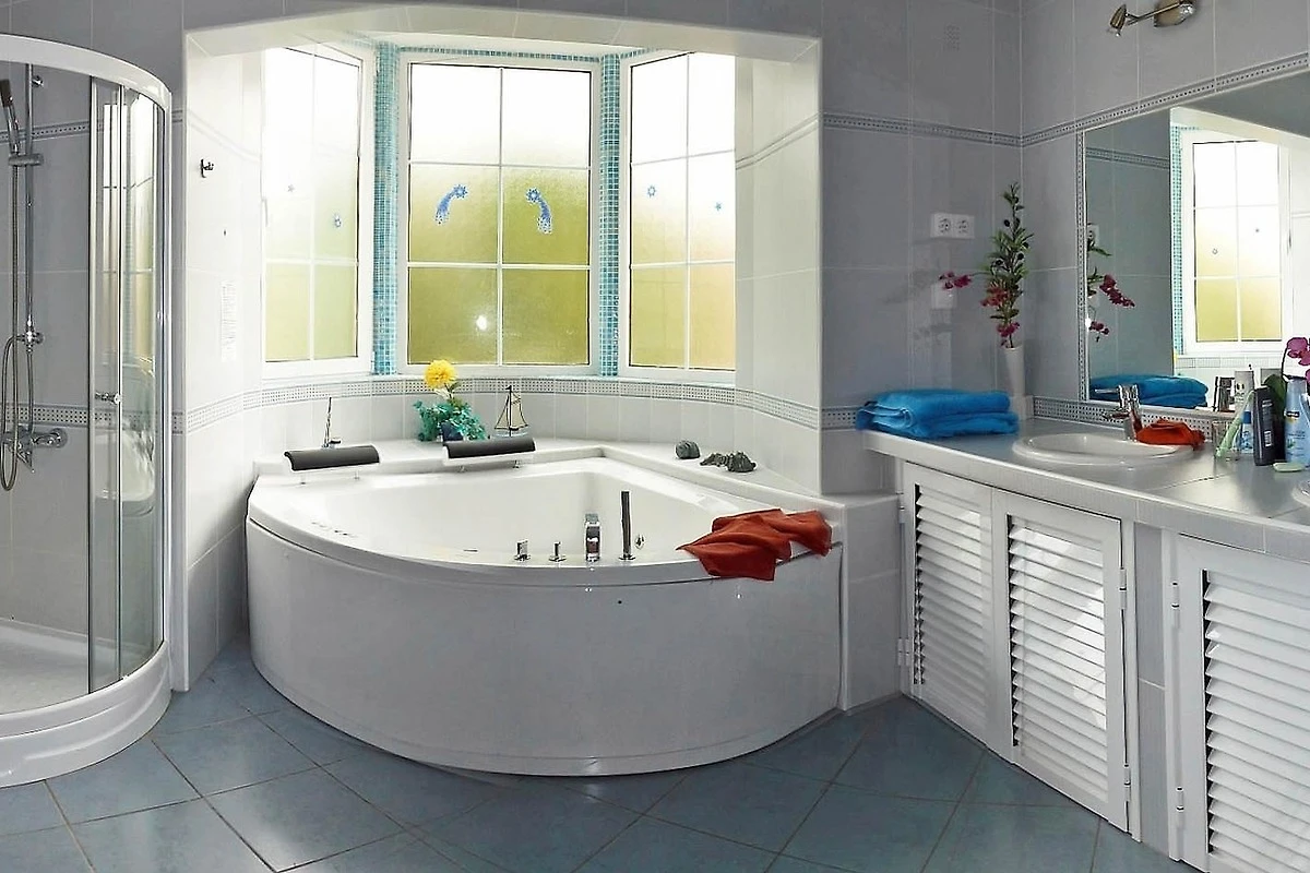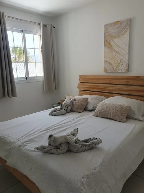 Es bietet mit seinen zwei grossen Schlafzimmern ausreichend Platz für 4 Personen. Das geräumige Badezimmer verfügt über ein Jacuzzi, eine Eckdusche, zwei Waschbecken und mehr als reichlich Platz.