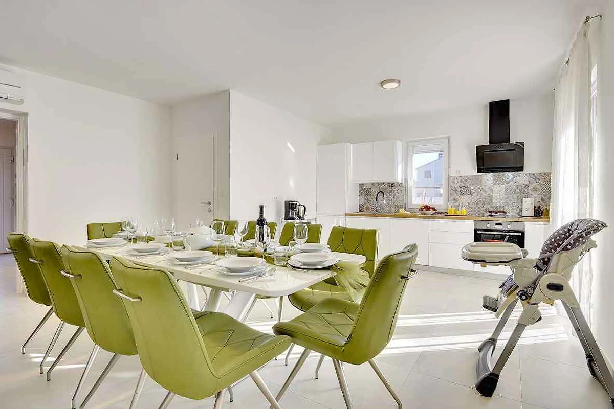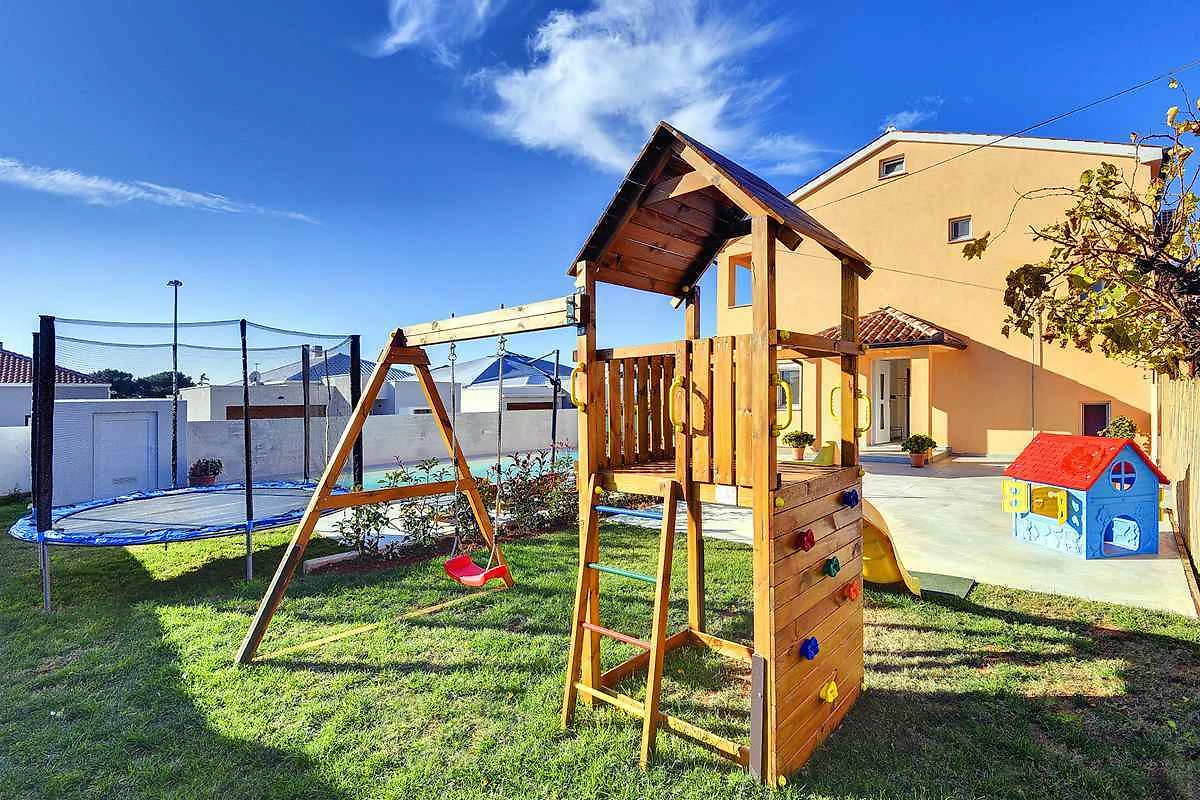 Die 1990 erbaute und 2020 renovierte Villa ist modern eingerichtet. Das Grundstück befindet sich in einem Wohngebiet, am Ortsrand. Auch wegen der sonnigen Lage ist das Domizil beliebt. Zur alleinigen Nutzung stehen zur Verfügung: Sonnenschirm, Sonnenliege, Kinderspielplatz, Schaukel, Gartendusche, Grillmöglichkeit, Terrasse und Gartenmöbel.