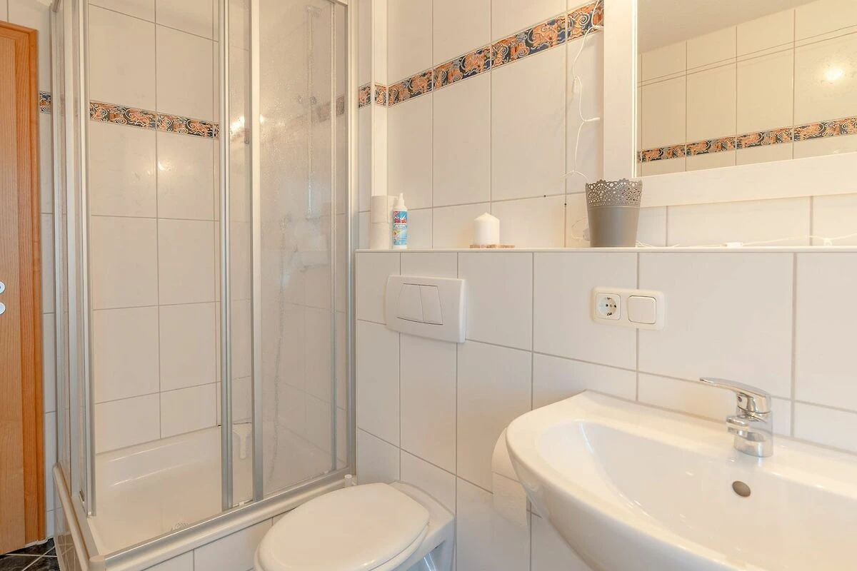 Das Badezimmer beinhaltet Dusche, Badewanne, Waschbecken und Handtuchheizkörper. Das 1. Schlafzimmer bietet Ihnen ein bequemes Doppelbett und einen geräumigen Kleiderschrank, das 2. Schlafzimmer ist mit 2 Einzelbetten ausgestattet.