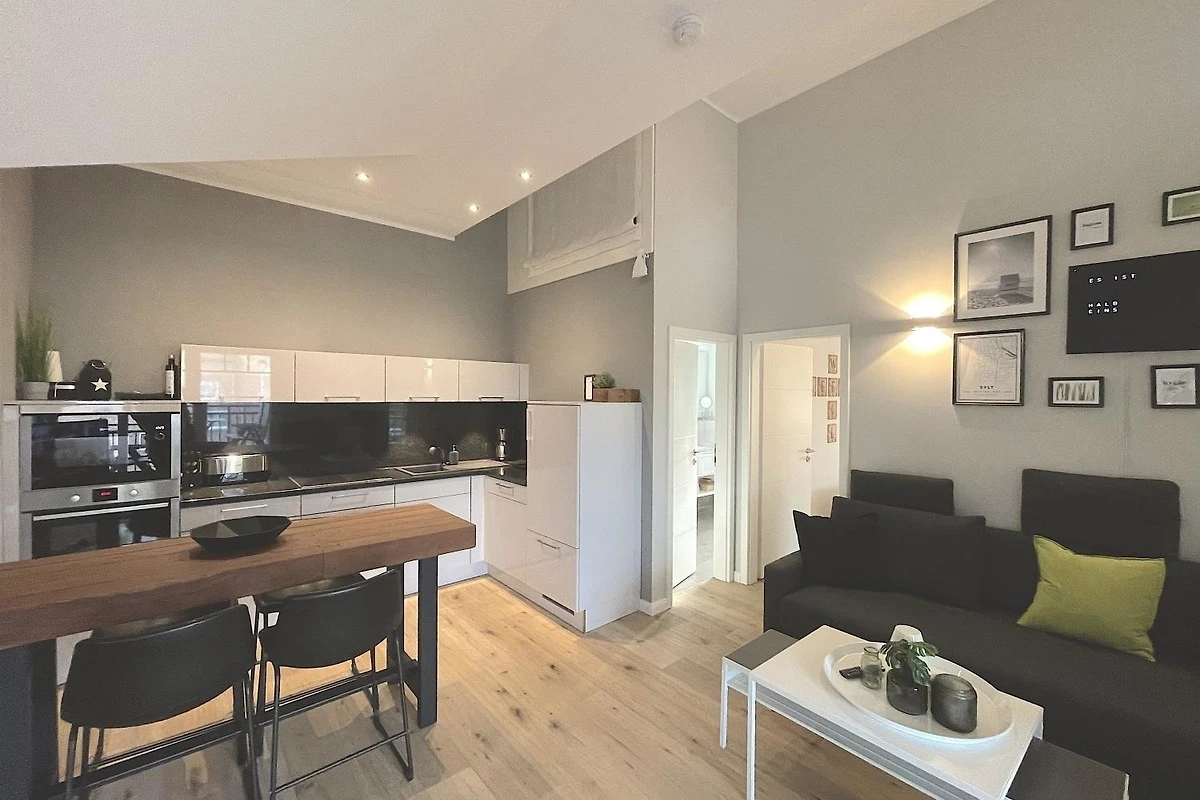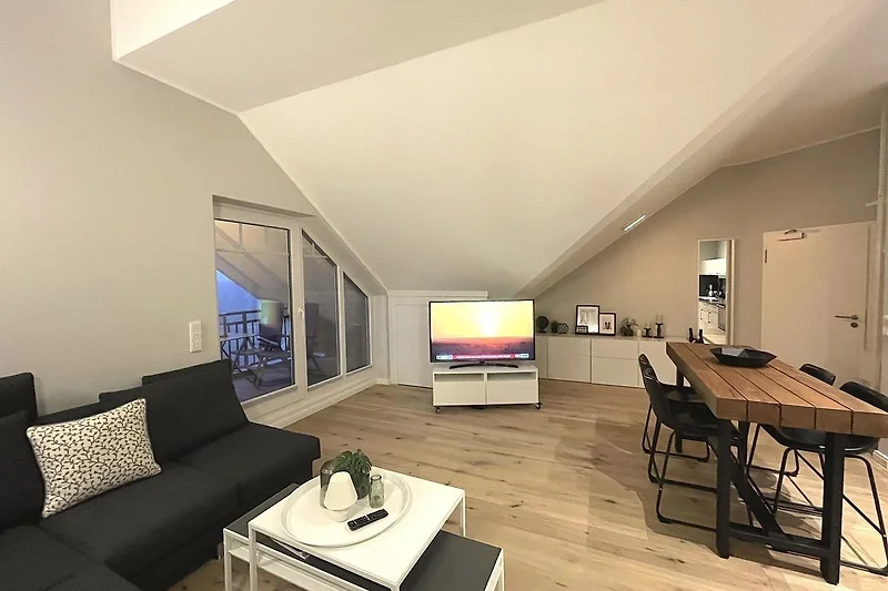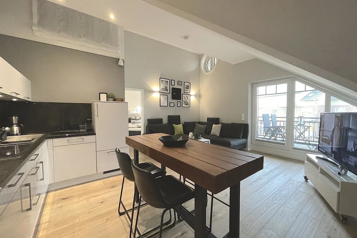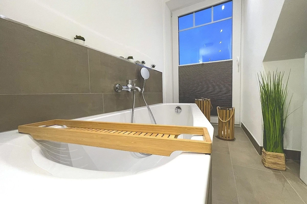 in den beiden Zimmern finden Sie alles, was Sie für eine Auszeit brauchen, hochwertige Küche und Möbel, moderne TV-Geräte und WLAN. Das Bad mit Tageslicht verfügt über eine Badewanne und eine bodenebene Dusche.