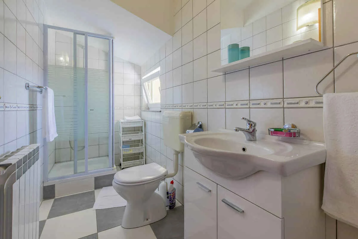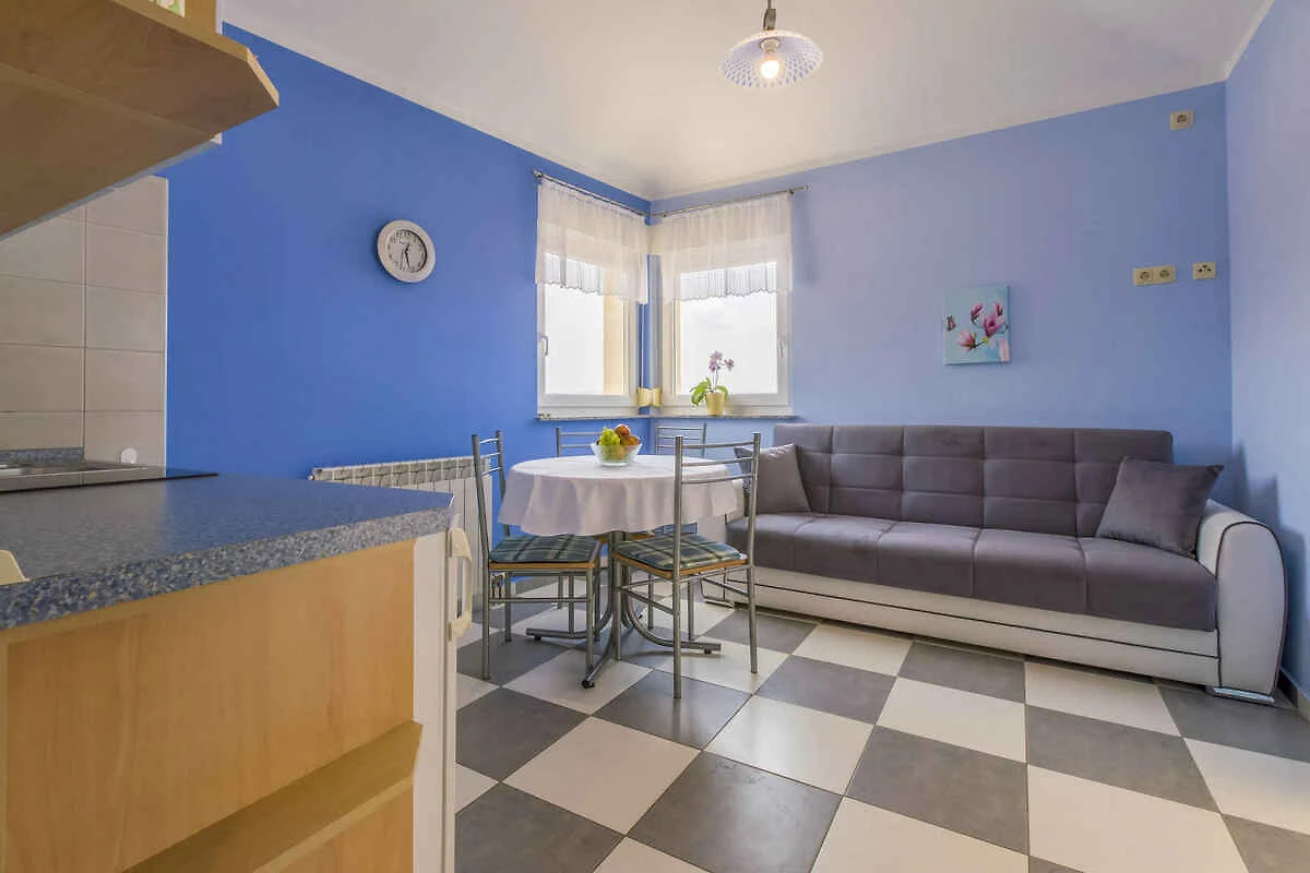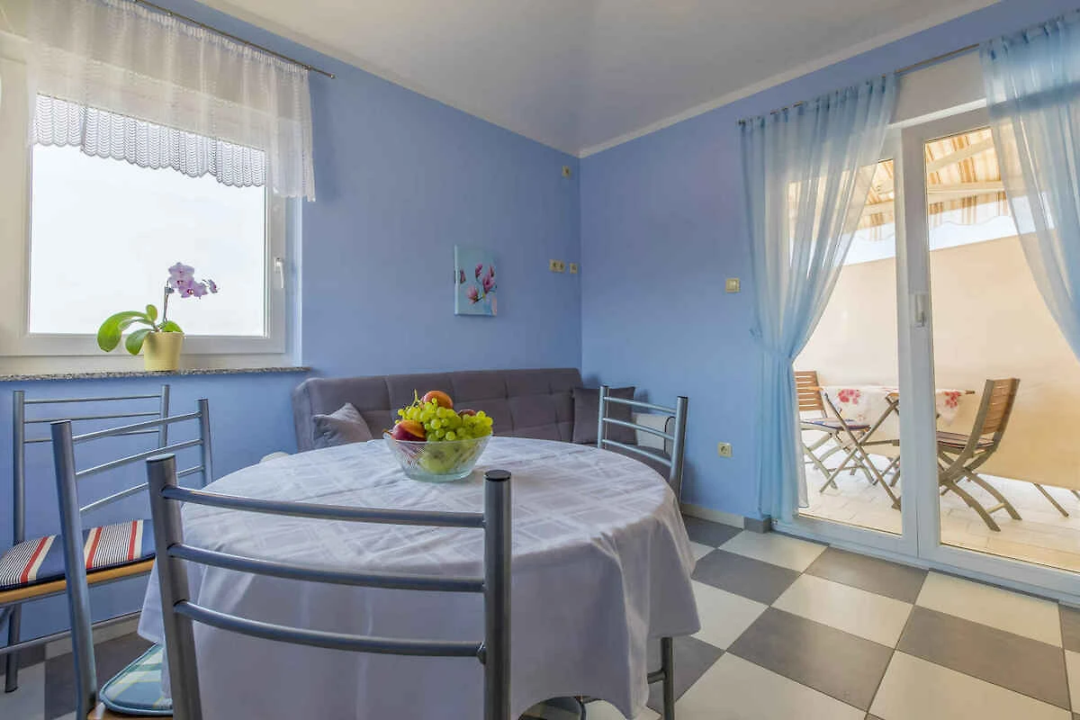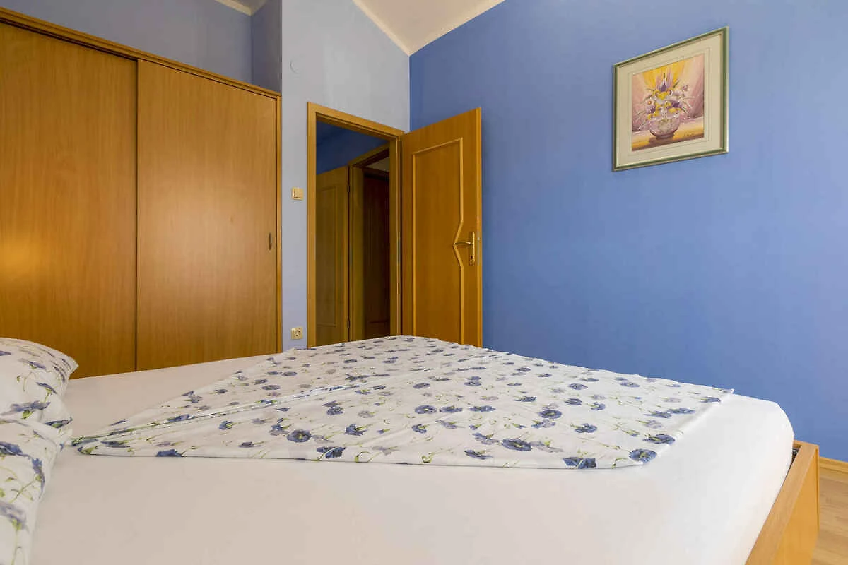 Selce. Die Ferienwohnung befindet sich auf einem offenen Grundstück. Der Vermieter wohnt ständig im Haus. Die Zufahrt erfolgt direkt von der Hauptstrasse (asphaltiert). Parkplatz auf dem Grundstück.