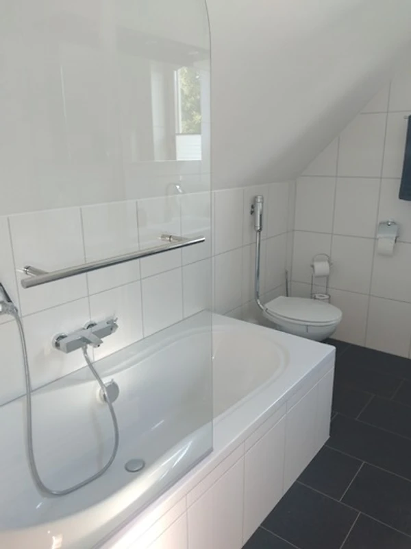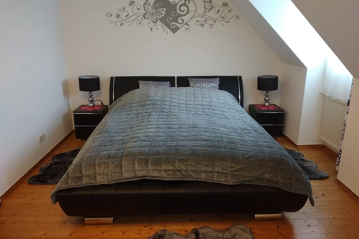 Die sehr schöne und moderne Unterkunft "Jennys Ferienwohnung" befindet sich am Ende einer Sackgasse die sofort auf einen Feldweg führt. Es gib keinen Durchgangsverkehr. Die Wohnung ist frisch renoviert worden und komplett neu eingerichtet. Sie verfügt über einen eigenen Eingang über eine Wendeltreppe. Dort befindet sich auch ein kleiner Balkon von dem aus Sie die herrliche Aussicht ins Grüne geniessen können. In der Nähe befinden sich unzählige Einkaufsmöglichkeiten die mit dem Auto in wenigen Minuten zu erreichen sind. Auch das Angebot an Gastronomie ist sehr gross.