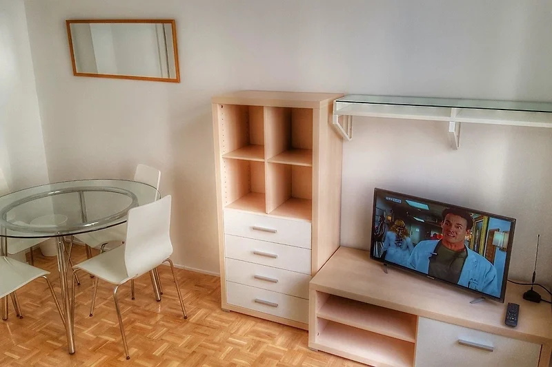 als Schlafsofa verwendbar 160×200) und Flat-TV (Kabelanschluss).