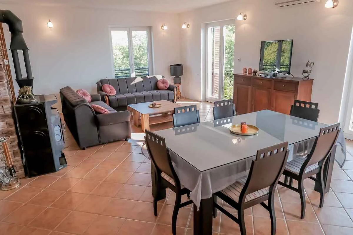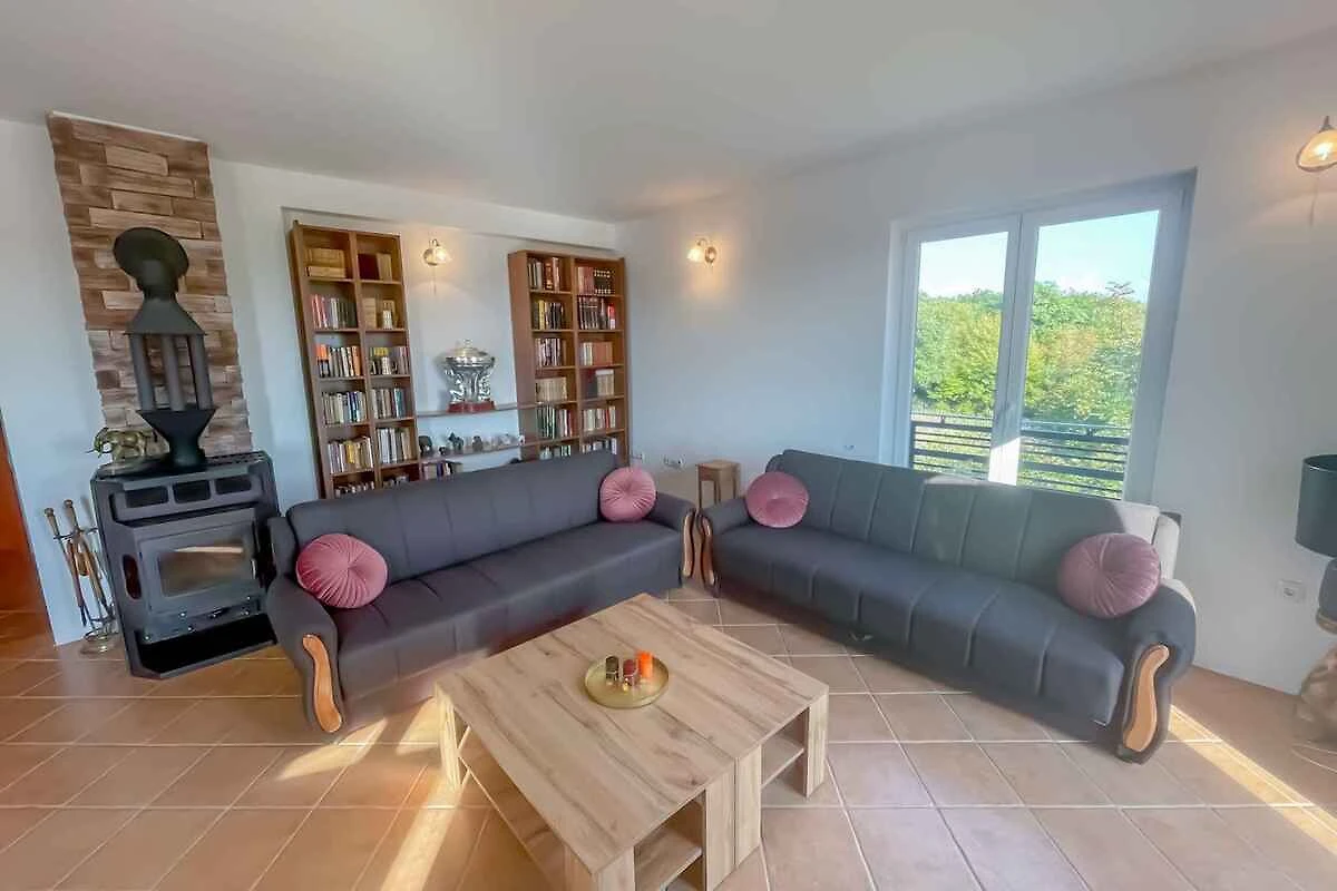Die einzeln stehende Villa ist modern und luxuriös eingerichtet. Das Grundstück befindet sich am Ortsrand. Auch wegen des Ausblicks vom Grundstück auf das Meer und der ruhigen und sonnigen Lage ist das Domizil beliebt. Zur gemeinsamen Nutzung stehen zur Verfügung: Liegewiese, Sonnenschirm, Sonnenliege, Gartendusche, Grillmöglichkeit, Terrasse, Pavillon und Gartenmöbel.