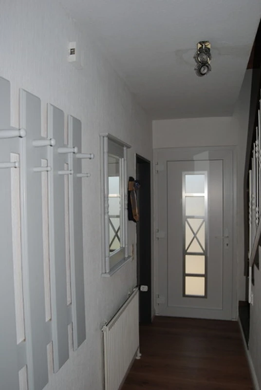 Das Haus hat im Erdgeschoss ein Wohn-Esszimmer mit offener Küche, Sat-TV mit 43 Zoll Smart TV, DVD Player, ein geräumiges helles Bad und einen Abstellraum. Die Küche ist komplett eingerichtet mit Herd, Ceranfeld, Geschirrspüler, Kühl-und Gefrierkombination, Dunstabzugshaube. Zudem finden Sie dort Kaffeemaschine, Toaster, Wasserkocher, und natürlich Geschirr, Töpfe und Pfannen.