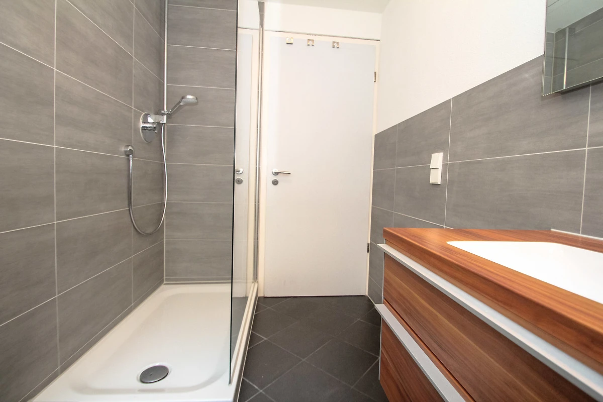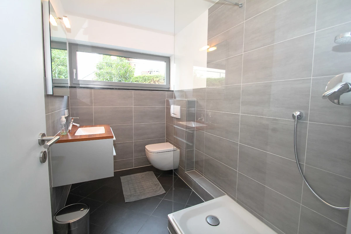 1 Schlafzimmer mit Doppelbett und direktem Blick auf den Bodensee, ebenerdiger Zugang zur Terrasse und Garten, Einbauküche, grosszügiger Wohn - und Essraum, modern ausgestattetes Bad mit WC und Dusche.