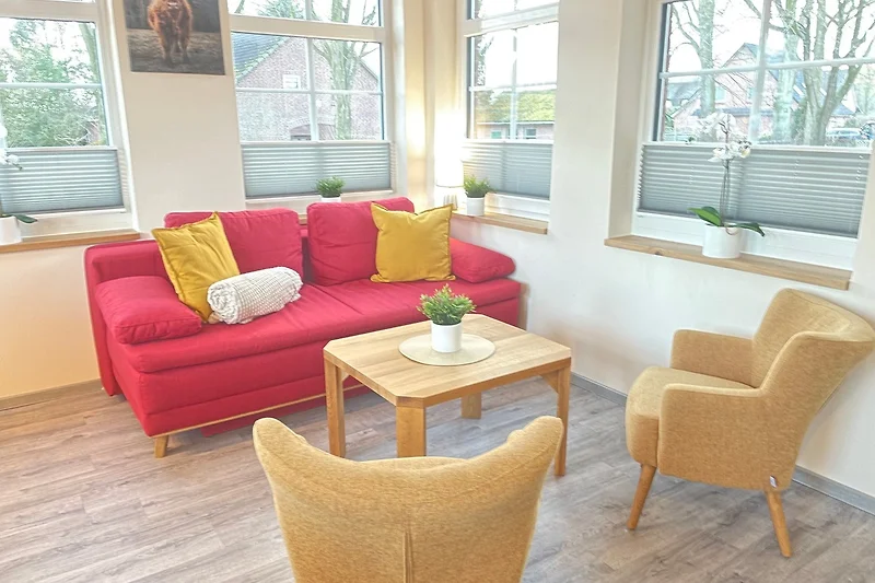 Unsere gemütliche Ferienwohnung im Erdgeschoss in Elmlohe, im Herzen zwischen Bremerhaven und Cuxhaven, bietet auf 50 qm Platz für bis zu 4 Personen und eignet sich perfekt für kleinere Familien oder Paare. Die Wohnung ist ideal für einen entspannten Aufenthalt und befindet sich in einer ruhigen Lage, umgeben von Natur. Geniessen Sie die Nähe zu vielen Sehenswürdigkeiten und Freizeitmöglichkeiten in der Region.