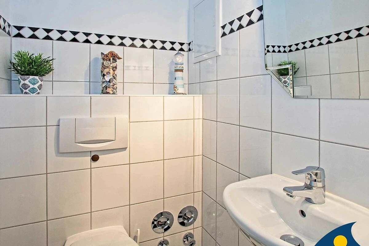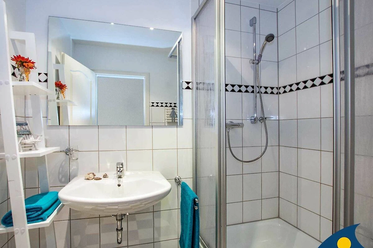 Das Badzimmer mit WC, Handwaschbecken und Dusche ist die kleine Wohlfühloase des Appartements.