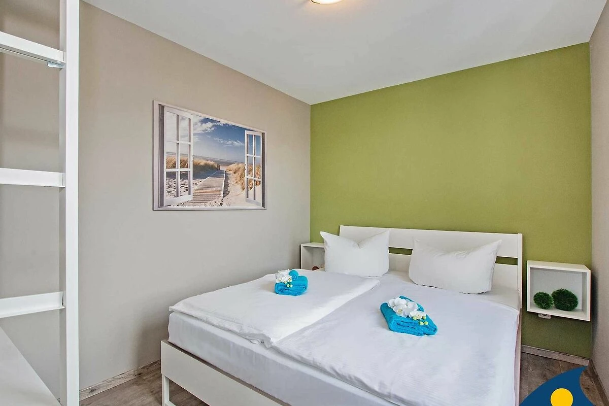Die 4 Schlafplätze befinden sich in dem gemütlichen Schlafzimmer sowie auf dem bequemen Schlafsofa im Wohnzimmer. Das Schlafzimmer bietet zudem genügend Stauraum für Ihre Urlaubsgarderobe.