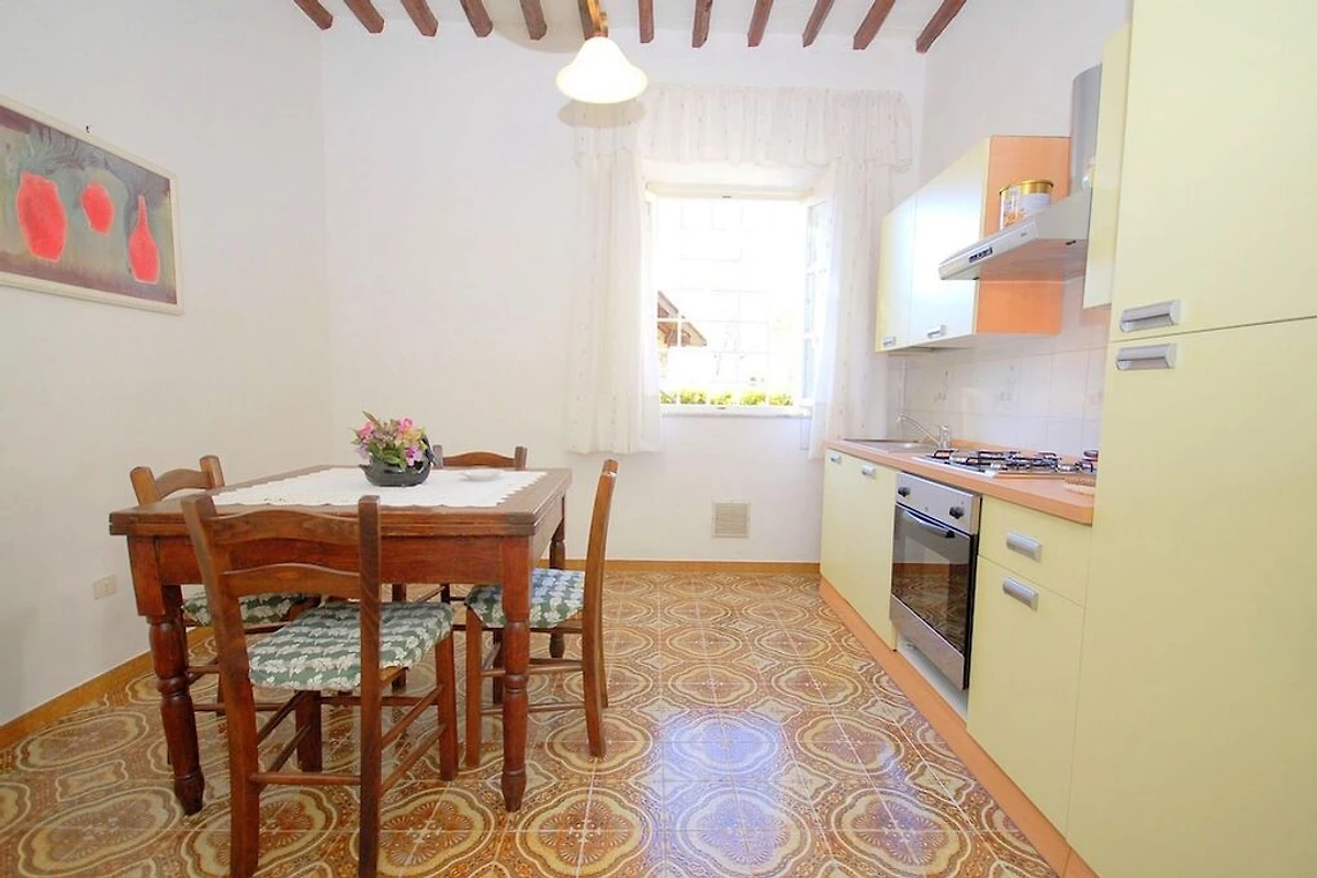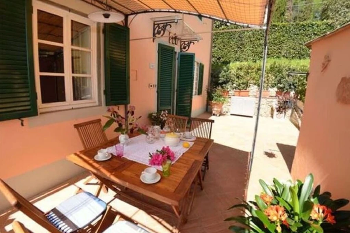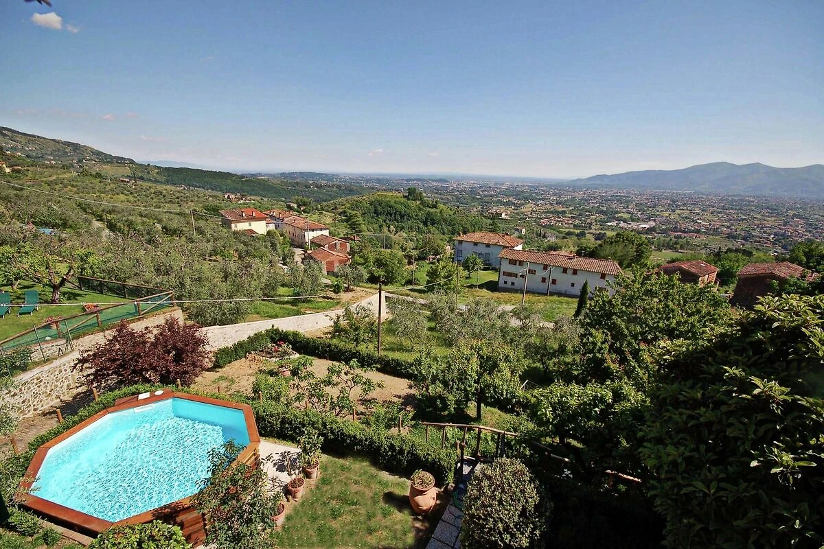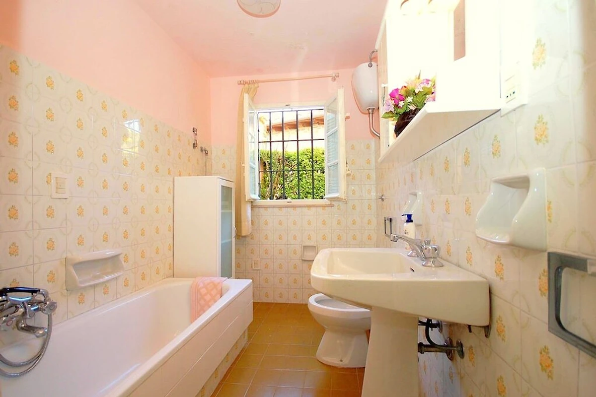 “Alla Collina del Sole” ist ein komfortabler Teil eines Hauses, welcher sich im 1. Stock befindet (ist praktisch wie Erdgeschoss, da das Haus über Hanglage verfügt). Das obere Stockwerk ist unbewohnt und geschlossen. Das Ferienobjekt liegt an einer sonnigen und paradiesischen Lage, auf den Hügeln nördlich von Lucca, im kleinen Dorf Ciciana. Die Landschaft zeichnet sich durch weiche Hügelzüge, mit Rebbergen und Olivenbäumen aus. Eine wunderschöne Oase für einen erholsamen Urlaub. Weitere Attraktion sind der Außenbereich, ausgestattet mit Tisch und Stühlen, ein gepflegter terrassierter Garten und das Schwimmbad (oberhalb der Erde, achteckig, aus Holz, 5x4m, tief: 1.40m), welche Ihnen das Leben im Freien angenehm machen. Die Umgebung bietet den Besuchern, die das erste Mal in der Gegend sind, sehr viel: charmante kleine Weiler, historische Villen mit traumhaften Parks, deliziöse Restaurants und die Weinroute, welche sich auf den Hügeln, um Montecarlo und Lucca windet. Viele bekannte toskanische Städte wie Pisa oder Florenz sind in einem Halb- oder Tagestrip zu entdecken; die Stadt Lucca liegt ganz in der Nähe. Die Küste mit ihren berühmten Bädern in Viareggio, Lido di Camaiore und Forte dei Marmi kann schnell und einfach mit dem Auto erreicht werden. Den Gästen steht das Haus exklusiv zu Verfügung, lediglich 2 Räume im Erdgeschoss sind abgeschlossen und das oberste Stockwerk. Das Haus ist auf einem terrassierten Terrain gebaut. Eingang im 1. Stock (ebenerdig): Flur, Wohnzimmer mit 1 Doppelbettsofa, 2 Sessel, Fenster mit traumhafter Aussicht auf das Tal. 1 Doppelbettzimmer (Betten können getrennt werden), 1 Doppelbettzimmer, Küche mit Herd, Ofen, Geschirrspüler, Waschmaschine, Mikrowelle, Bügelbrett und Bügeleisen, Esstisch. Ein paar Stufen tiefer: 1 Badezimmer mit Wanne/Dusche, WC und Bidet. Parkmöglichkeit ca. 30 m vom Haus, der Strasse entlang.Bei Ankunft werden die Gäste einen Willkommen-Korb und Basis-Nahrungsmittel bekommen.