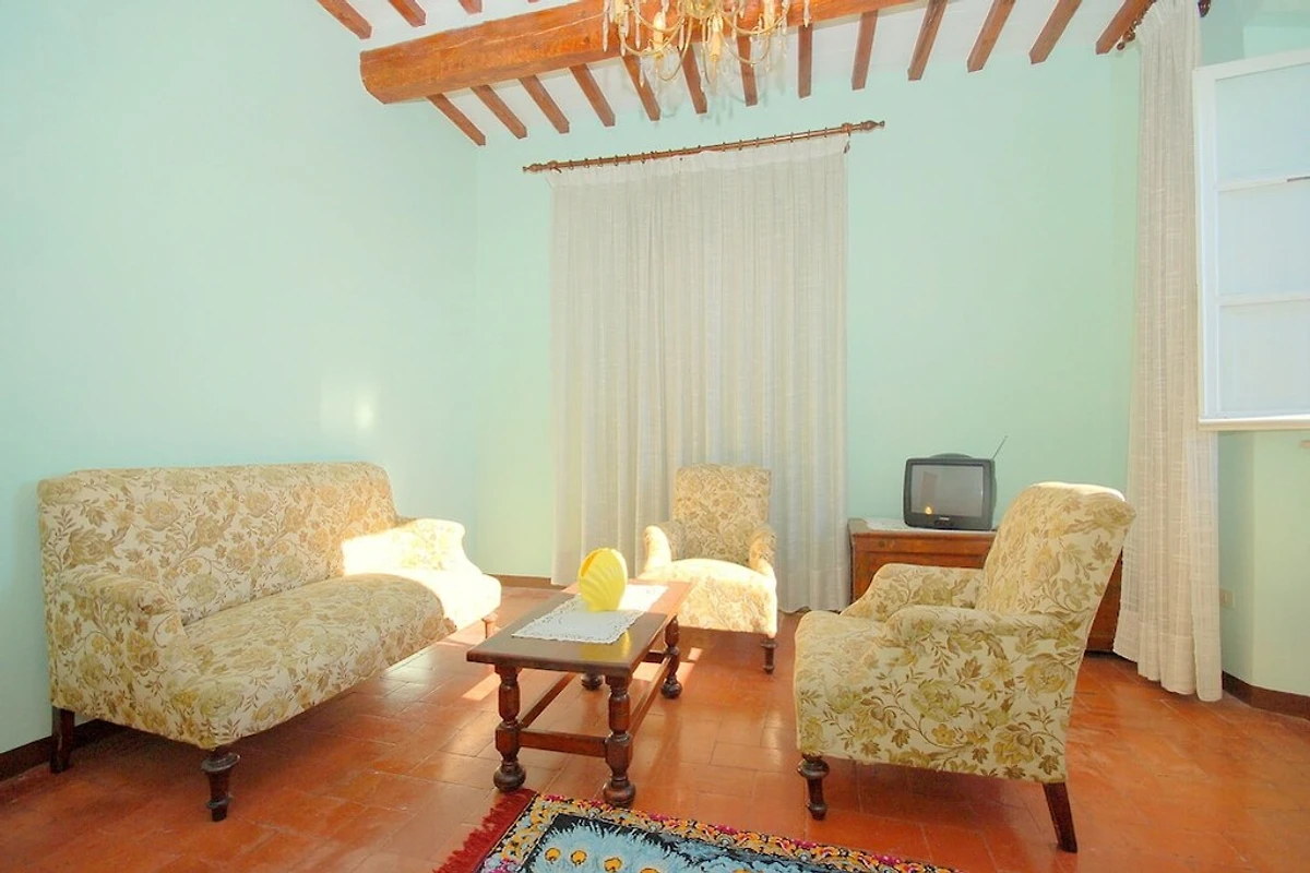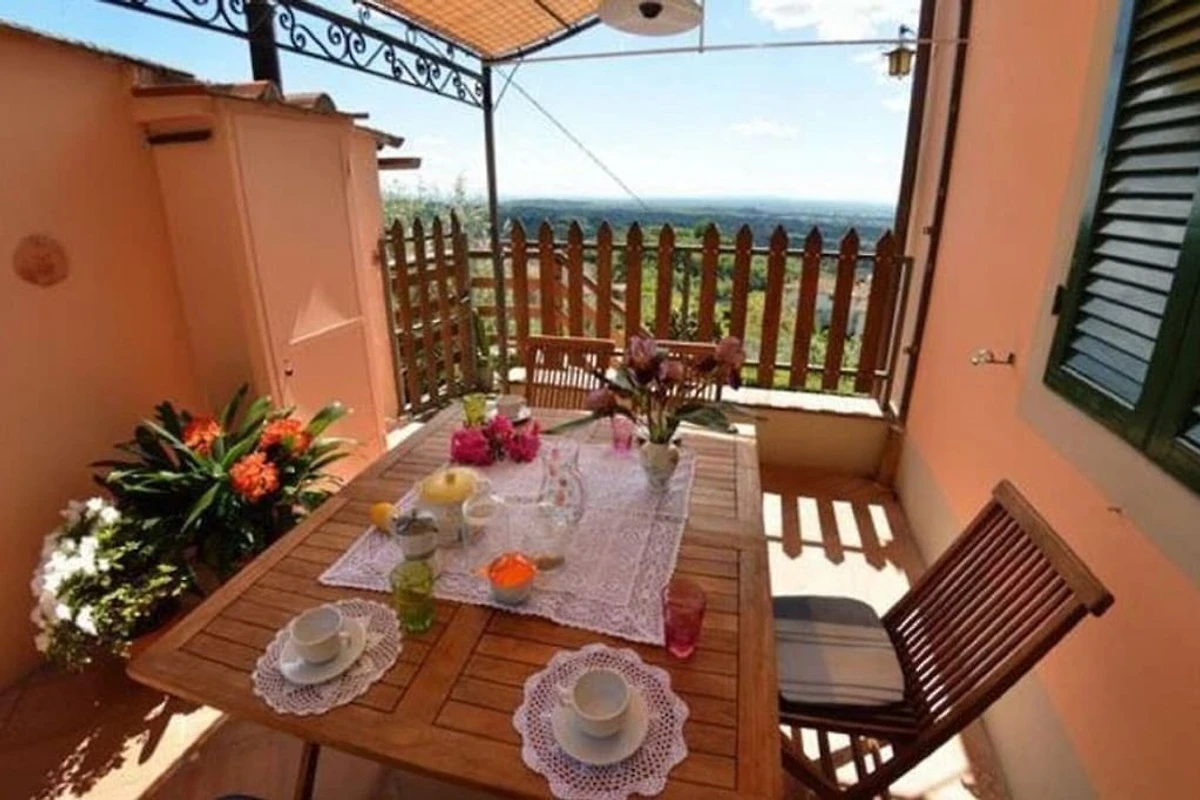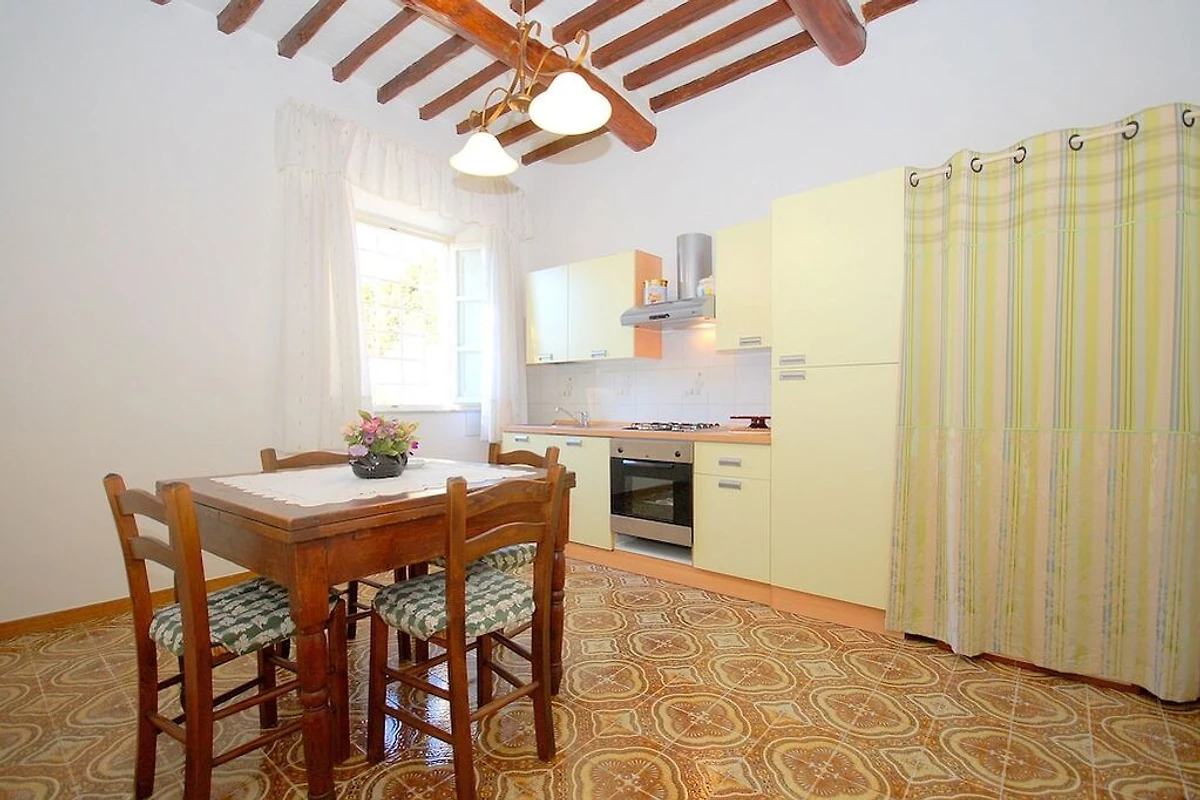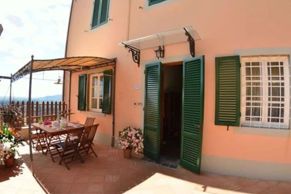 “Alla Collina del Sole” ist ein komfortabler Teil eines Hauses, welcher sich im 1. Stock befindet (ist praktisch wie Erdgeschoss, da das Haus über Hanglage verfügt). Das obere Stockwerk ist unbewohnt und geschlossen. Das Ferienobjekt liegt an einer sonnigen und paradiesischen Lage, auf den Hügeln nördlich von Lucca, im kleinen Dorf Ciciana. Die Landschaft zeichnet sich durch weiche Hügelzüge, mit Rebbergen und Olivenbäumen aus. Eine wunderschöne Oase für einen erholsamen Urlaub. Weitere Attraktion sind der Außenbereich, ausgestattet mit Tisch und Stühlen, ein gepflegter terrassierter Garten und das Schwimmbad (oberhalb der Erde, achteckig, aus Holz, 5x4m, tief: 1.40m), welche Ihnen das Leben im Freien angenehm machen. Die Umgebung bietet den Besuchern, die das erste Mal in der Gegend sind, sehr viel: charmante kleine Weiler, historische Villen mit traumhaften Parks, deliziöse Restaurants und die Weinroute, welche sich auf den Hügeln, um Montecarlo und Lucca windet. Viele bekannte toskanische Städte wie Pisa oder Florenz sind in einem Halb- oder Tagestrip zu entdecken; die Stadt Lucca liegt ganz in der Nähe. Die Küste mit ihren berühmten Bädern in Viareggio, Lido di Camaiore und Forte dei Marmi kann schnell und einfach mit dem Auto erreicht werden. Den Gästen steht das Haus exklusiv zu Verfügung, lediglich 2 Räume im Erdgeschoss sind abgeschlossen und das oberste Stockwerk. Das Haus ist auf einem terrassierten Terrain gebaut. Eingang im 1. Stock (ebenerdig): Flur, Wohnzimmer mit 1 Doppelbettsofa, 2 Sessel, Fenster mit traumhafter Aussicht auf das Tal. 1 Doppelbettzimmer (Betten können getrennt werden), 1 Doppelbettzimmer, Küche mit Herd, Ofen, Geschirrspüler, Waschmaschine, Mikrowelle, Bügelbrett und Bügeleisen, Esstisch. Ein paar Stufen tiefer: 1 Badezimmer mit Wanne/Dusche, WC und Bidet. Parkmöglichkeit ca. 30 m vom Haus, der Strasse entlang.Bei Ankunft werden die Gäste einen Willkommen-Korb und Basis-Nahrungsmittel bekommen.
