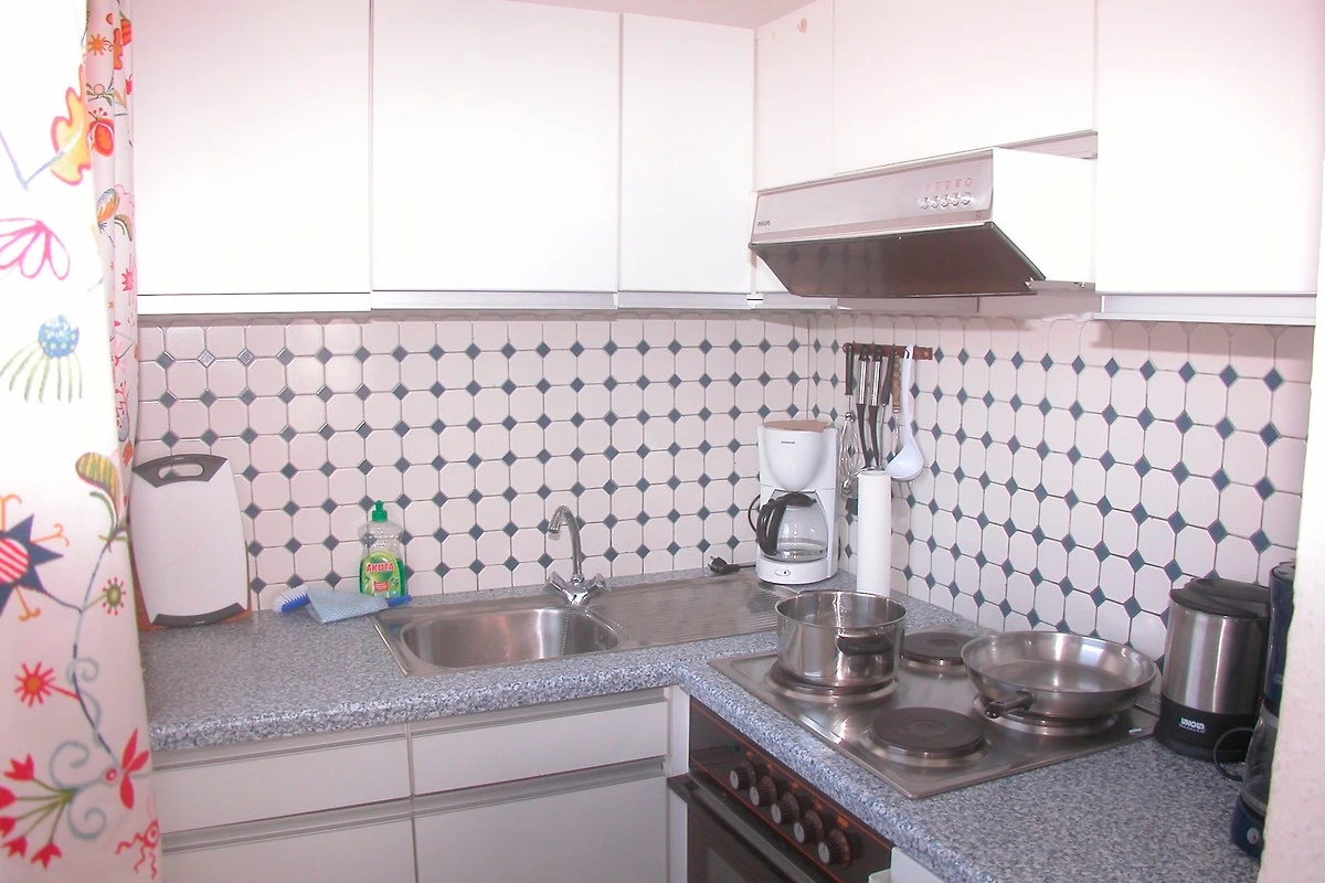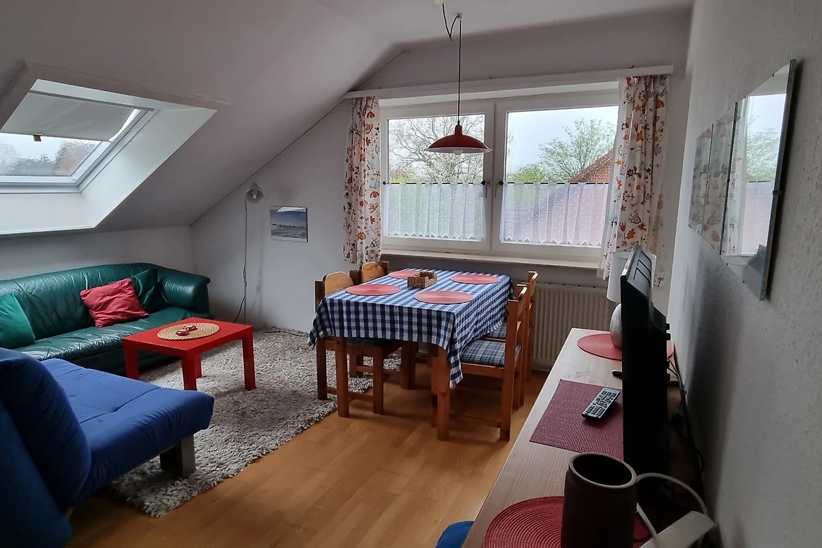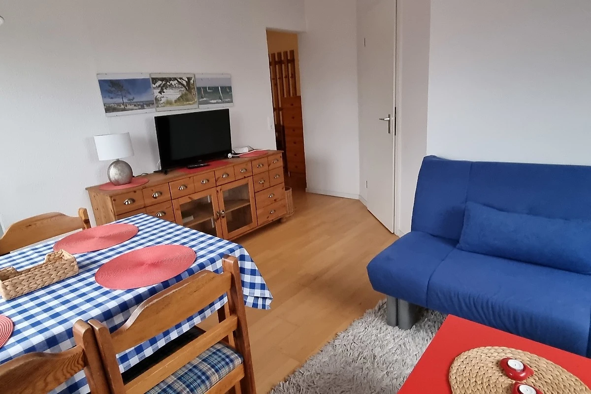 Dreizimmerwohnung (42 qm) im 1. Stock, ca. 200 m vom Hundestrand und ca. 400 m vom allgemeinen Strand entfernt, für 5 Personen und ein Kleinkind.