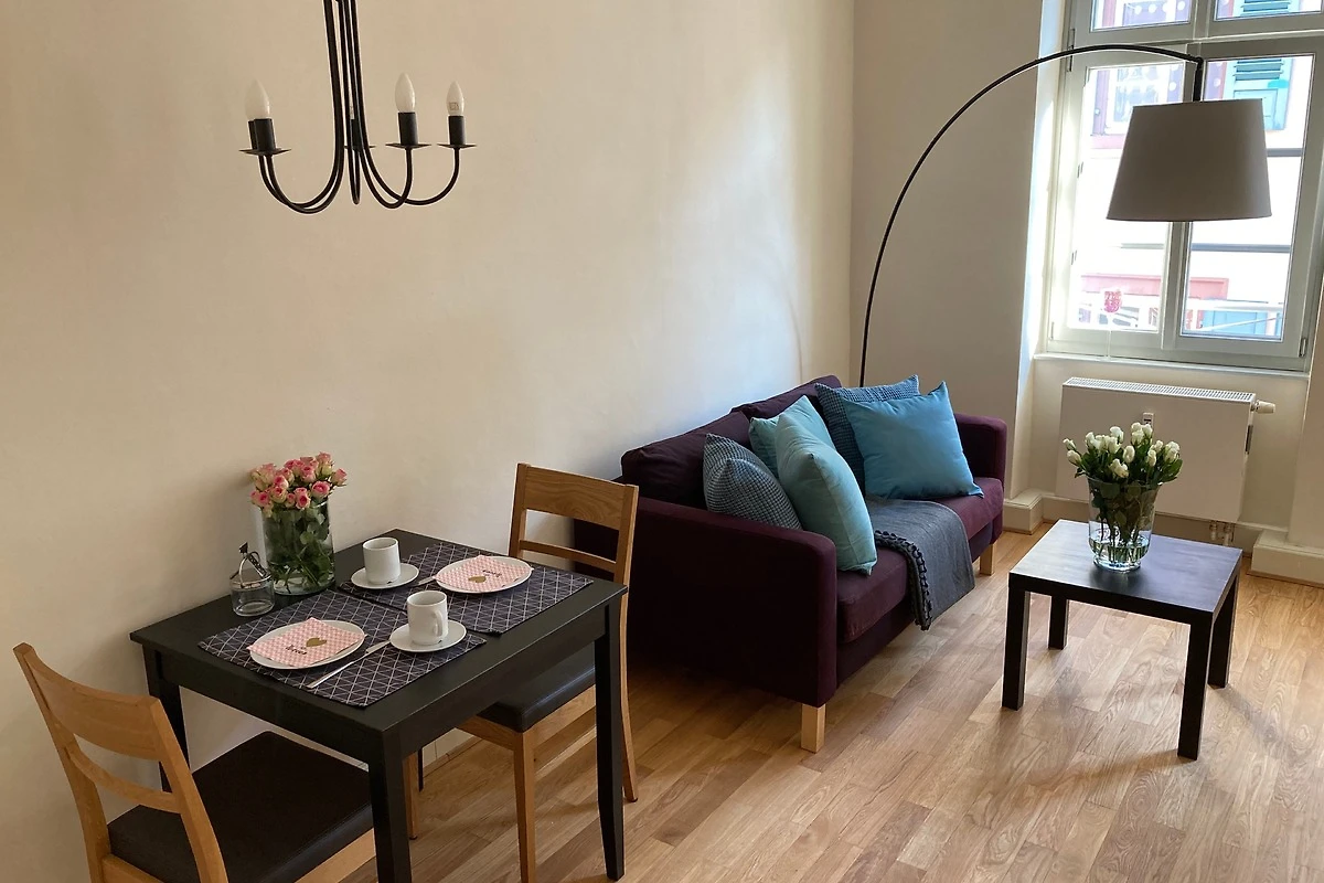 Die Wohnung liegt sehr zentral am Marktplatz und der grossen Heilig-Geist-Kirche, alle Geschäfte zum täglichen Bedarf sind in unmittelbarer Nähe, ebenso einige kostenpflichtige Parkhäuser. Die Bergbahn zum Schloss ist zu Fuss in ca. 5 Minuten zu erreichen, ebenso ist der Neckar nach 2 Minuten zu Fuss erreicht.