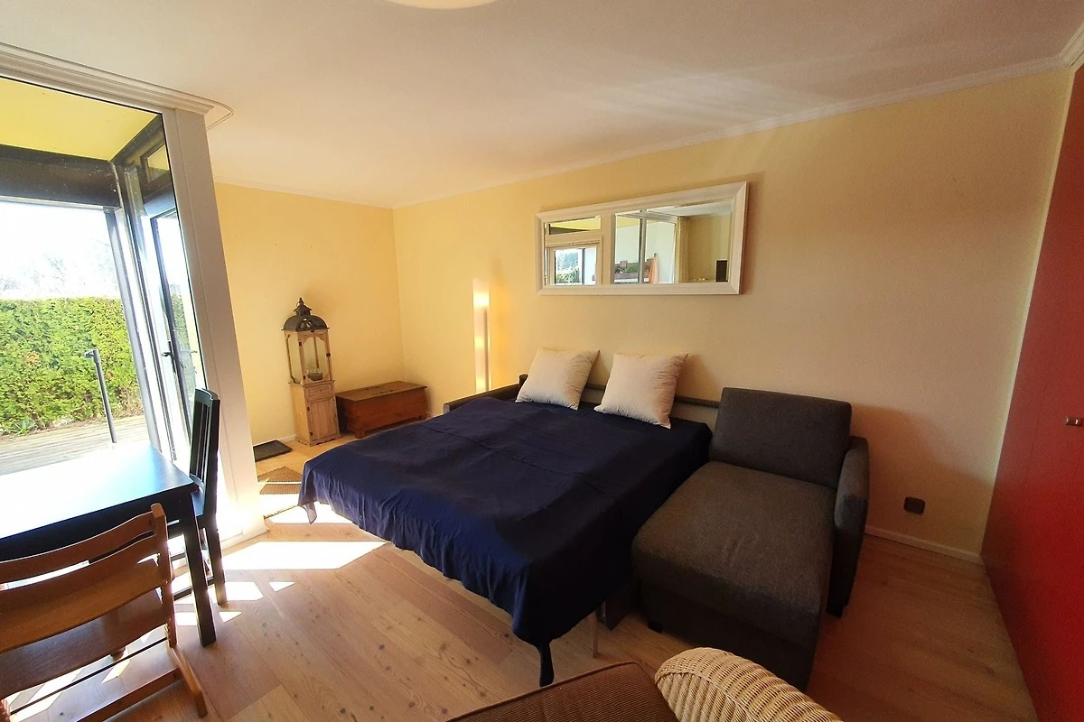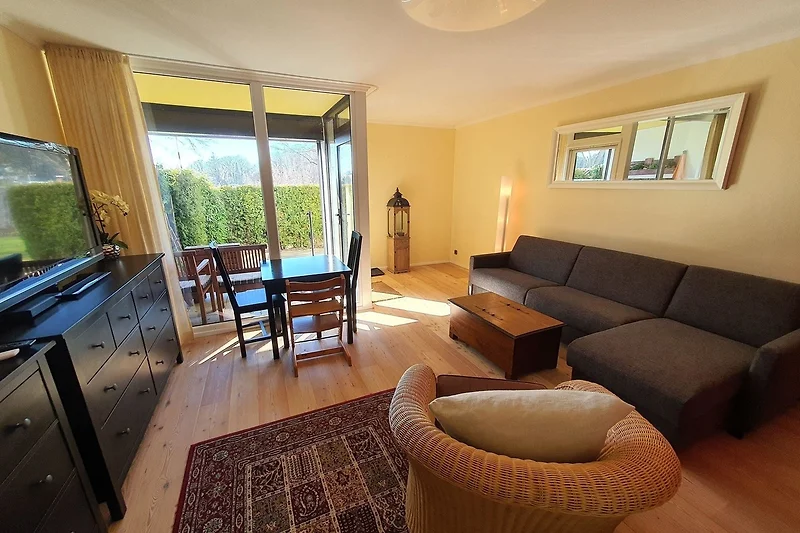In dieser modernen Ferienwohnung erwartet die Gäste eine allergikergeeignete Umgebung, die ein angenehmes Aufenthaltserlebnis verspricht. Der Wohnraum besticht durch ein helles Wohnschlafzimmer, das mit einer komfortablen Schlafcouch ausgestattet ist. Hier können sich die Gäste nach einem erlebnisreichen Tag entspannen.