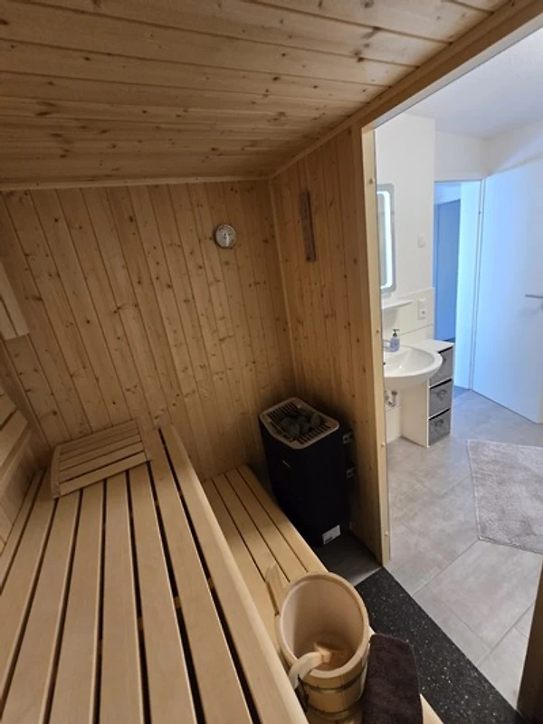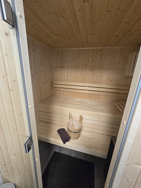 Es gibt im Badezimmer eine eigene Sauna, diese ist mit einem Eurozähler versehen, bei Saunabesuchen wird mittels Münzeinwurf die Sauna betrieben , 30 min Laufzeit werden für 1 Euro gegeben.