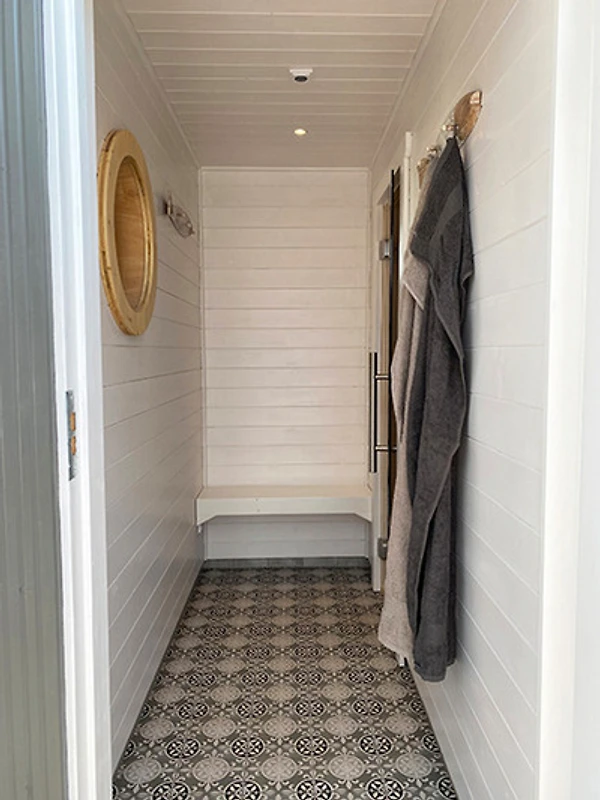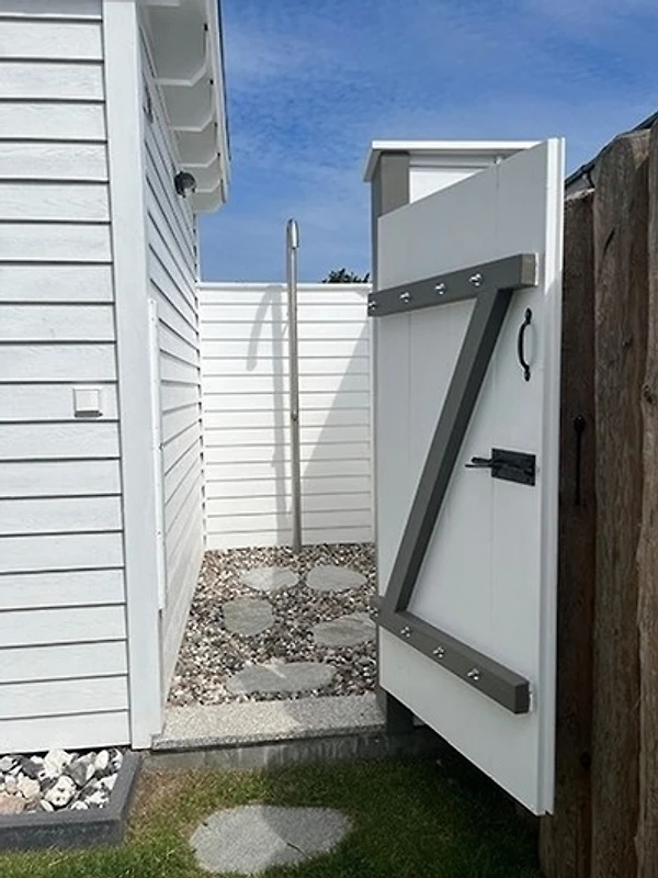 Geniessen Sie auch die 2 hellen Bäder mit Dusche, Badewanne und der "Aussicht aus dem Fenster". Der Garten mit den 2 grossen Terrassen N/O und S/W und mit jeweils einer elektrischen Markise ausgestattet, bietet von morgens bis abends die Gelegenheit, Sonne und die frische, gesunde Ostseeluft zu geniessen. Mit der Aussensauna inklusive einer Aussendusche steht ihrem "SPA Moment" nichts mehr im Wege. Die Benutzung der Sauna und der Waschmaschine sind inklusive. Ein grosser Schuppen bietet ihren Fahrrädern und dem Grill ein trockenes Plätzchen. 2 eigene Parkplätze sind auf dem Grundstück vorhanden.