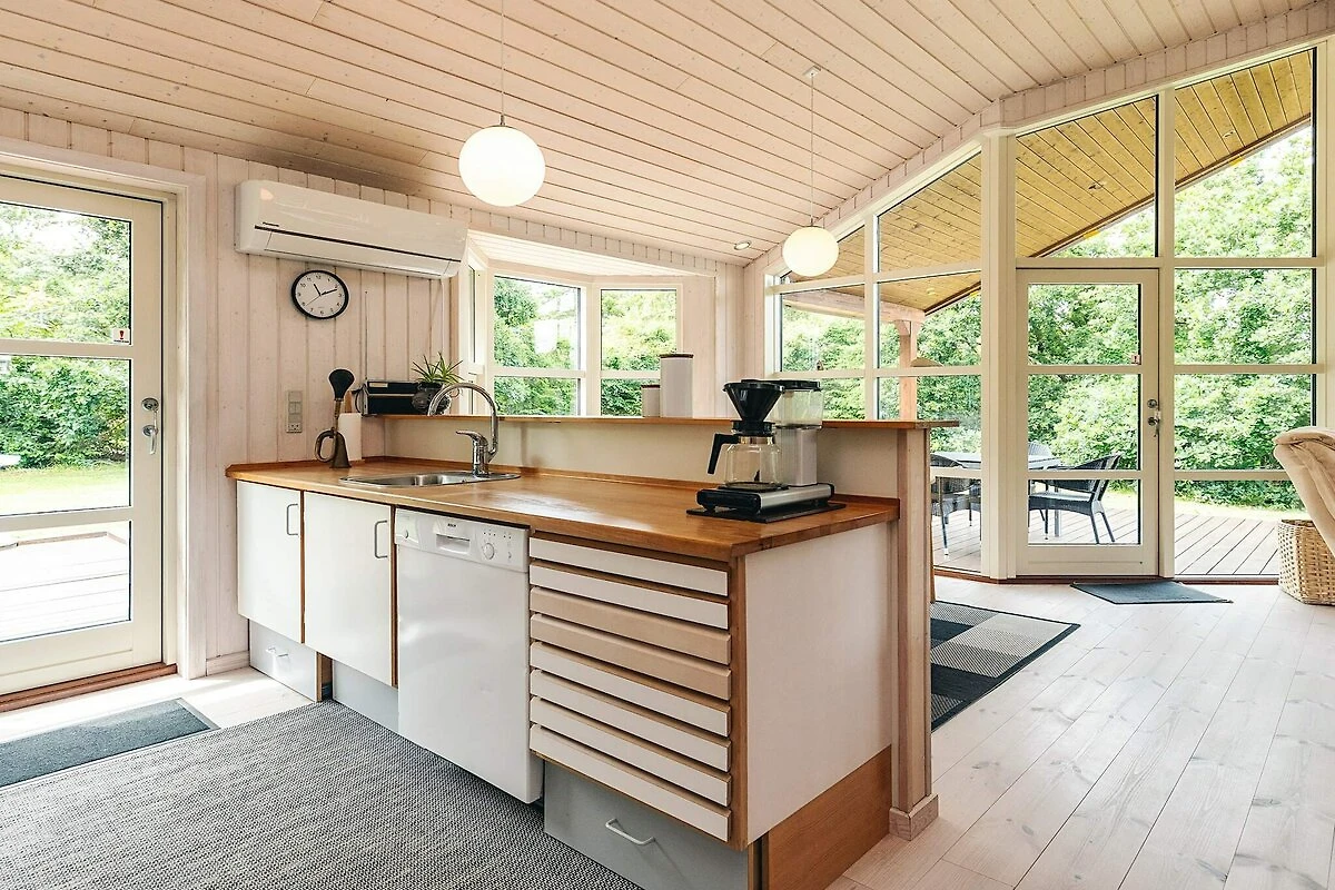 Nur 500 Meter vom Limfjord entfernt, in der Nähe des Gebiets Trend, liegt dieses Ferienhaus auf einem großen Naturgrundstück, das zu erholsamen Tagen im Freien einlädt. Der großzügige Garten bietet viel Platz zum Spielen, Sport und Entspannen und ist somit die perfekte Wahl für Familien oder Gruppen, die die Natur genießen möchten. Das helle und einladende Haus vereint modernen Komfort mit gemütlicher Atmosphäre und schafft so einen komfortablen Ausgangspunkt für Ihren Urlaub. Das Herzstück des Hauses ist die kombinierte Wohnküche. Hier können Sie in der gut ausgestatteten Küche mit Cerankochfeld, Dunstabzugshaube, Mikrowelle, Kaffeemaschine und Geschirrspüler Ihre Mahlzeiten zubereiten. Der Wohnbereich ist komfortabel eingerichtet und verfügt über kostenloses WLAN und einen Smart-TV zum Streamen Ihrer eigenen Programme. An kühleren Abenden können Sie zwischen der energiesparenden Wärmepumpe oder dem traditionellen Holzofen wählen, um das Haus warm und einladend zu halten. Ein Badezimmer mit Dusche, WC, Fußbodenheizung und Waschmaschine sorgt für Komfort und Funktionalität. Drei Schlafzimmer mit jeweils zwei Einzelbetten bieten flexible Schlafmöglichkeiten. Ein großer Dachboden unter der Dachschräge bietet zwei zusätzliche Schlafplätze, insbesondere für Kinder. Im Außenbereich stehen überdachte und offene Terrassen mit hochwertigen Gartenmöbeln und einem Gasgrill zur Verfügung. Der perfekte Ort für entspannte Nachmittage oder gemütliche Grillabende bei Sonnenuntergang. Ob Sie Ihre Tage am Limfjord verbringen, die Umgebung erkunden oder einfach die Ruhe der Natur genießen möchten – dieses Ferienhaus bietet alles, was Sie für einen unvergesslichen Aufenthalt benötigen. Bitte beachten Sie, dass keine Vermietung an Jugendgruppen möglich ist, um eine ruhige und familienfreundliche Umgebung zu gewährleisten.Kurz vor Ihrem Ankunftsdatum kann eine rückzahlbare Kaution erhoben werden. Die Kaution stellt sicher, dass Ihr Aufenthalt reibungslos verläuft, und deckt eventuelle Zusatzleistungen oder Verbrauchskosten ab.Diese Kaution deckt den Verbrauch von Nebenkosten während Ihres Aufenthalts sowie zusätzliche in Anspruch genommene Leistungen ab.Der endgültige Betrag wird anhand der tatsächlichen Zählerstände und Nutzung zusätzlicher Services angepasst. Ein etwaiger Restbetrag wird Ihnen innerhalb von 21 Tagen nach dem Check-out zurückerstattet.Die Kaution dient lediglich als Vorauszahlung für Leistungen, die Sie ohnehin bezahlen würden, und ermöglicht einen reibungslosen Ablauf Ihres Aufenthalts und Check-outs.