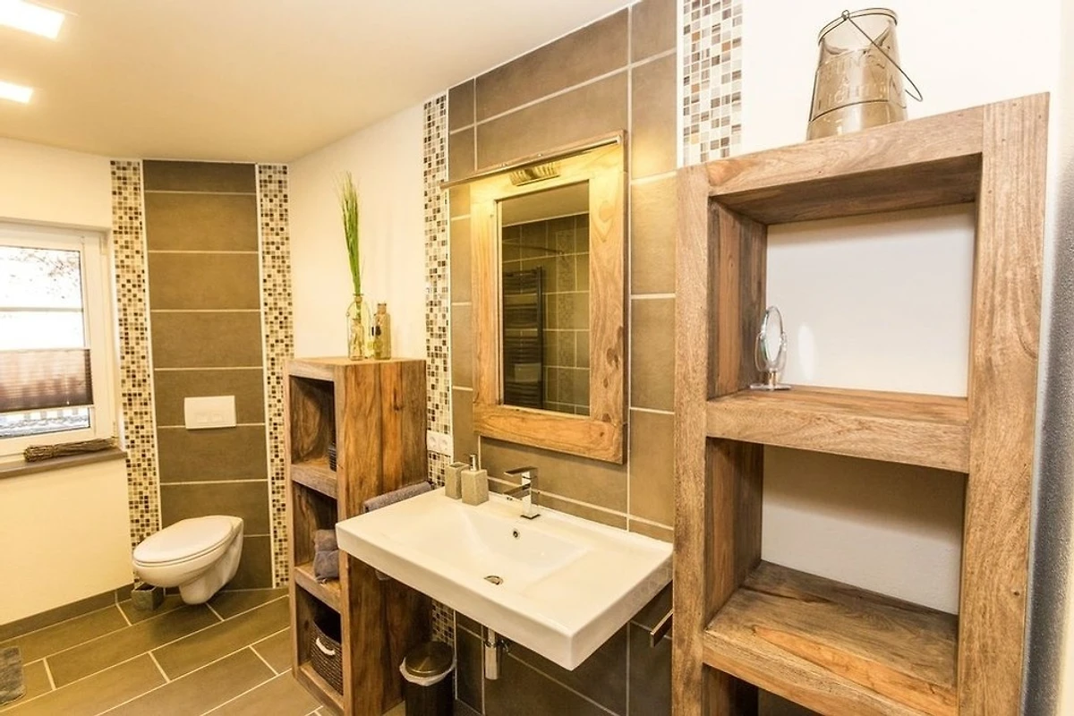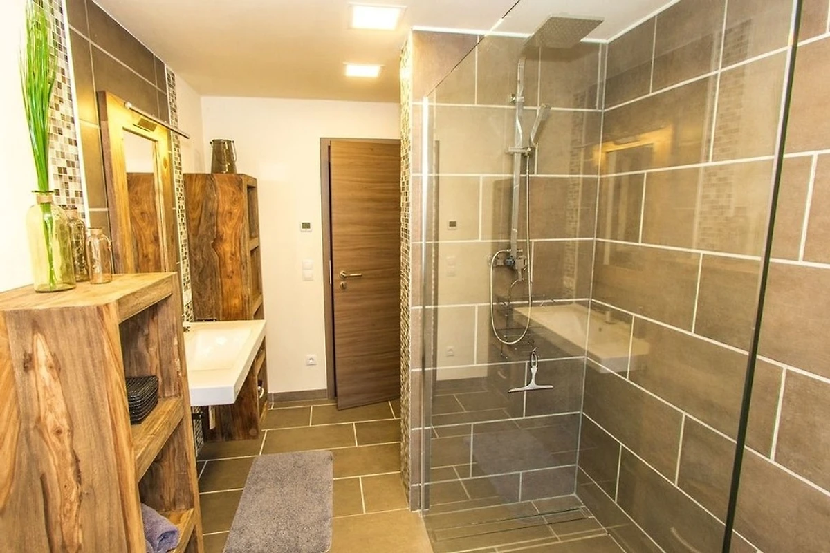 Alle Räume beider Ferienwohnungen sind mit hochwertigen Fliesen sowie Fussbodenheizung ausgestattet. Die Temperatur kann für jeden Raum den persönlichen Bedürfnissen angepasst werden.