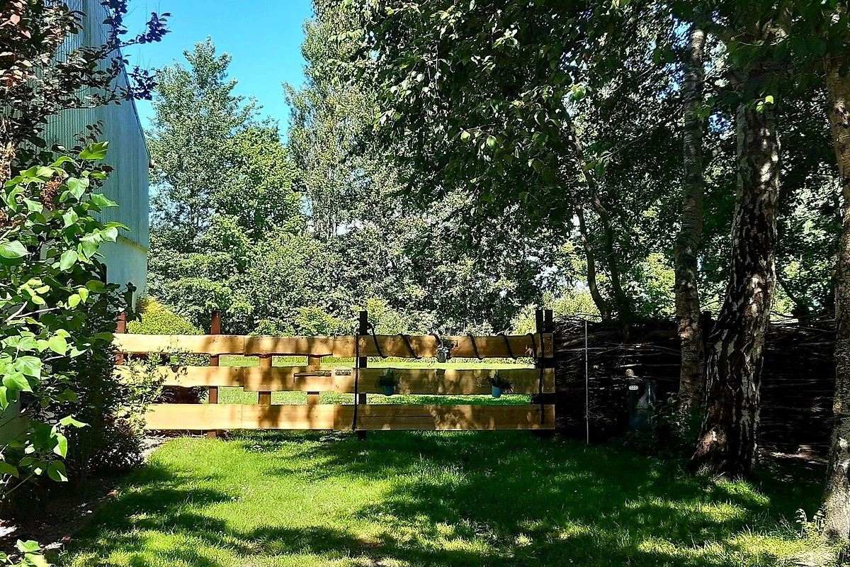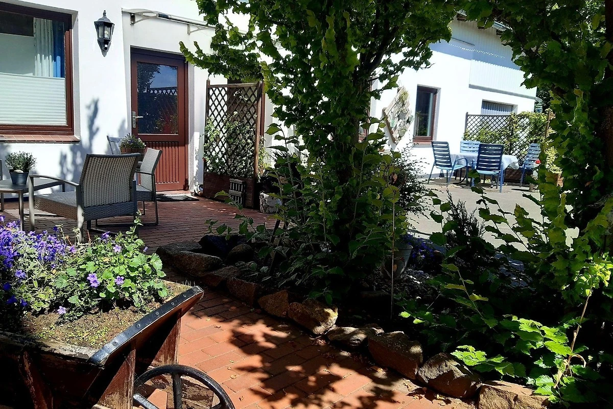 Die Ferienwohnung befindet sich auf einem 4000 qm grossen Grundstück,neben dem Haupthaus. Durch die Scheune gelangen Sie in den grossen Garten mit Naturteich, einer Feuerstelle für gemütliche Abende mit Lagerfeuer oder Grillen. Ein kleiner Spielplatz befindet sich ebenfalls im Garten. In der Scheune haben wir für unsere kleinen Gäste ein Trampolin und verschiedene Fahrzeuge bereit gestellt. Unteranderem befindet sich dort ein Gesellschaftsraum mit kleiner Teeküche und die Waschküche mit Waschmaschine und Trockner (gegen eine Gebühr von 2,50 Euro pro Gang)