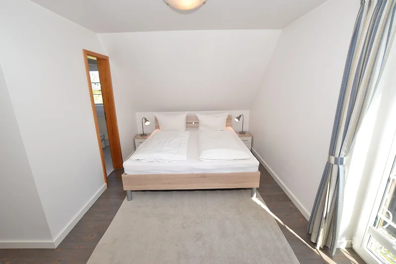 Der separate Schlafraum bietet ein komfortables Doppelbett (180x200), in dem Sie wunderbar zur Ruhe kommen und neue Energie für den nächsten Urlaubstag tanken können. Das Badezimmer mit Dusche und WC sorgt für zusätzlichen Komfort während Ihres Aufenthalts.