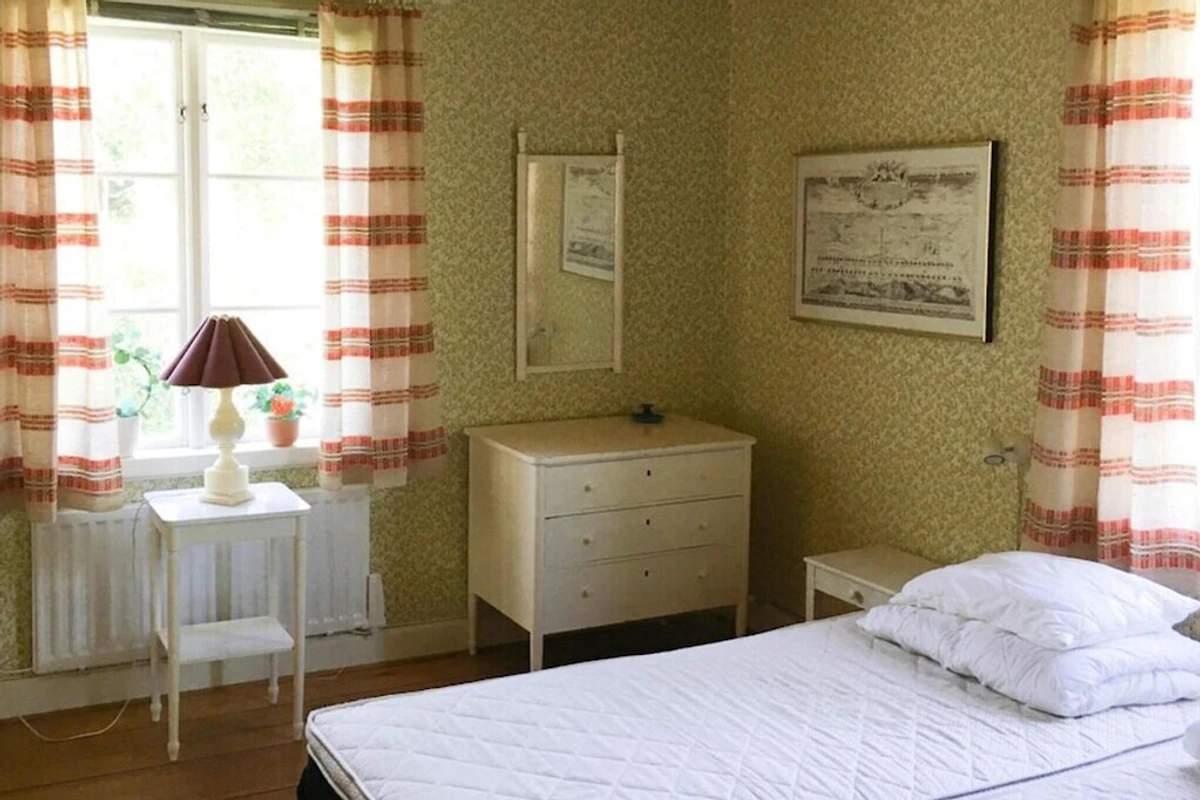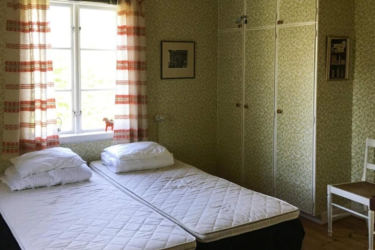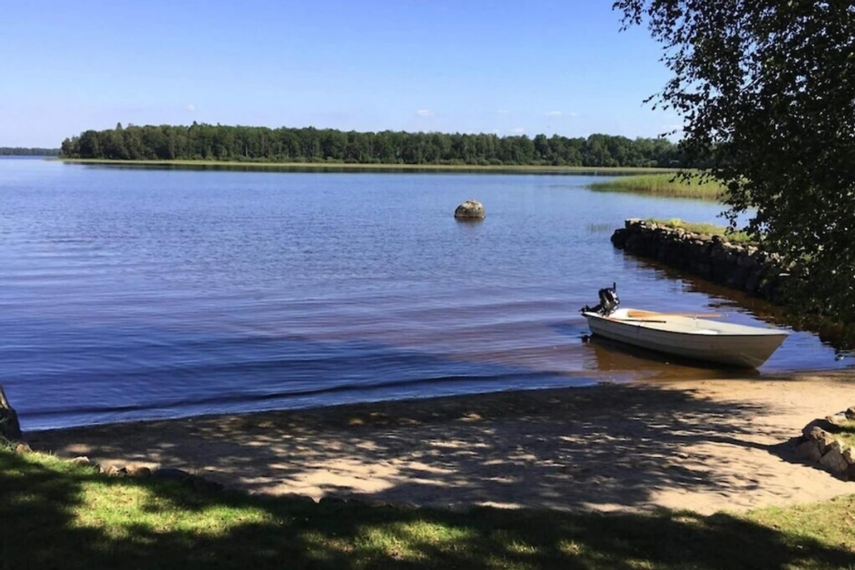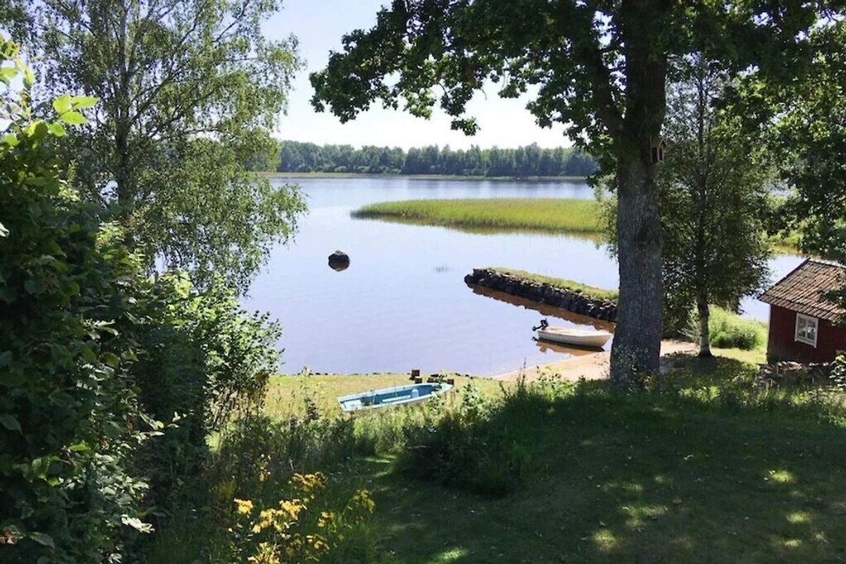 In wunderbarer Lage befindet sich dieses schöne Ferienhaus auf einem Strandgrundstück direkt am Vidösternsee. Von der überdachten Terrasse sind es nur 30 Meter hinunter zum kleinen Sandstrand. Hier können Sie den Seeblick genießen, egal ob Sie morgens frühstücken oder abends grillen. Genießen Sie ein morgendliches Bad, bevor Sie sich auf der Terrasse niederlassen und Ihren Tag planen. Vielleicht haben Sie das Boot und den Motor gemietet und möchten den See erkunden oder angeln? Vielleicht planen Sie einen Ausflug oder möchten einfach nur den Tag beim Sonnenbaden und Entspannen in der wunderbaren Umgebung verbringen. Dies ist eine wahre Idylle mit vielen Möglichkeiten für einen gelungenen Urlaub. Im Ferienhaus gibt es eine praktische Küche mit Essbereich, ein Wohnzimmer mit einem wunderschönem Kamin, in dem man an kühlen Abenden ein Feuer anzünden kann, sowie ein Klavier für alle, die gerne Musik genießen möchten. Ein Schlafzimmer mit zwei Einzelbetten, die zu einem Doppelbett zusammengestellt werden können, und ein Badezimmer mit Waschmaschine und Trockner. Sie haben auch einen Schlafboden mit 4 Betten. Beachten Sie, dass es eine steile Treppe nach oben gibt und die Deckenhöhe im Dachgeschoss niedrig ist. Auf dem großen schönen Grundstück ist viel Platz zum Spielen und Spielen. Unten am Strand gibt es auch die Möglichkeit, auf dem dafür vorgesehenen Grillplatz ein Feuer zu machen. enn Sie sich für das Angeln interessieren, sollten Sie unbedingt hierher kommen. Der Vidösternsee ist einer der besten Angelseen Südschwedens mit gutem Zugang zu Zander, Hecht und Barsch. Darüber hinaus ist der Ferne Osten ideal zum Kanufahren. In der Umgebung finden Sie auch viele gut markierte Rad- und Wanderwege. In den Wäldern rund um den See gibt es auch reichlich Beeren und Pilze. Es gibt viele Ausflugsmöglichkeiten in der näheren Umgebung und zum Einkaufen ist ein Besuch in Ljungby und Växjö schön. Nutzen Sie die Gelegenheit, an einer Führung durch Ljungby teilzunehmen. Machen Sie einen Tagesausflug nach Glasriket und besuchen Sie die Verkaufsstellen für Nutzglas und dekoratives Glas der berühmten Glashütte. Herzlich willkommen im Paradies.