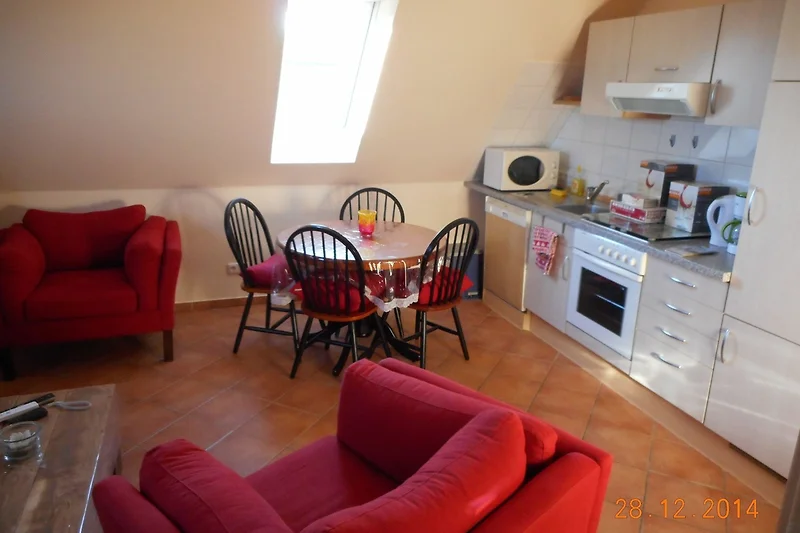 Eine Wohnküche, 2 Schlafzimmer mit einem Bett 140*200 und ein Kinderzimmer mit 2 Betten je 90*200. Ein grosses Bad mit Dusche. In der Küche ist alles vorhanden was man benötigt .