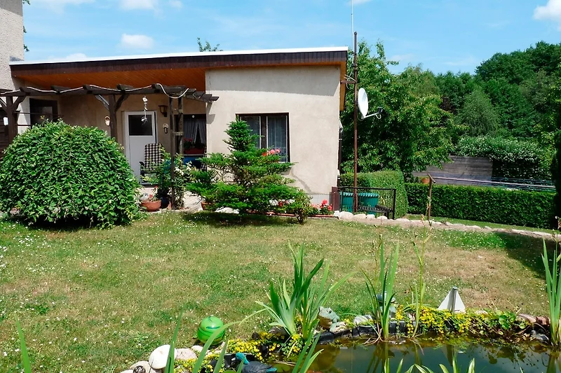 Lage: Die Ferienwohnung befindet sich im blühenden Garten, in einem Anbau an das Wohnhaus der Eigentümer. Das Grundstück liegt mitten in dem Luftkurort Röbel, direkt an einem kleinen Privatsee, jedoch ohne Zugang, in einer sehr ruhigen Sackgasse. Von Ihrer eigenen Terrasse können Sie in den Garten sehen und die Idylle des hübsch angelegten Gartenteiches geniessen. Sehr interessant sind die vielseitigen Naturgeräusche und ?Beobachtungen, die Sie schon vor Ihrer Haustür haben werden. Fahrradtouren können Sie direkt vom Grundstück aus starten, hier befindet sich ein wichtiger Radweg. Nur 300 m von der Ferienwohnung entfernt, befinden Sie sich schon an der Müritz, dem grössten Binnensee Deutschlands. In Röbel werden Sie von den liebevoll sanierten Fachwerkhäusern der Altstadt, dem kleinen Hafen, den beiden frühgotischen Backsteinkirchen sowie den Restaurants und Cafés begeistert sein. Schwimmen und saunieren können Sie in jeder Jahreszeit hier in der Müritztherme. Das kleine Dorf Bollewick, ca. 5 km entfernt, besitzt auf Grund des imposanten Bauwerkes der grössten Feldsteinscheune Deutschlands, die im Jahre1881 erbaut wurde, eine grosse Anziehungskraft auf Besucher, die sich nicht nur von den traditionellen Märkten eingeladen fühlen. Ebenfalls sehenswert sind die Grosssteingräber zwischen Bollewick und Spitzkuhn. Röbel liegt inmitten der Mecklenburgischen Seenplatte. Eingebettet in viel Wald und Wasser finden Naturliebhaber hier alles, was das Herz begehrt. Für Erlebnisse auf und um das Wasser ist gesorgt. Ob beim Schwimmen, an einem der vielen Badestrände in der Gegend, Rudern, Surfen, Kanu, oder Motorboot fahren, Angeln, Kutsch- und Kremserfahrten, oder sonstigen Freizeitaktivitäten, Langeweile kommt ganz bestimmt nicht auf. Aber auch zum Bummeln und Shopping finden Sie in den benachbarten Luftkurorten wie Malchow und Waren viel Gelegenheit.