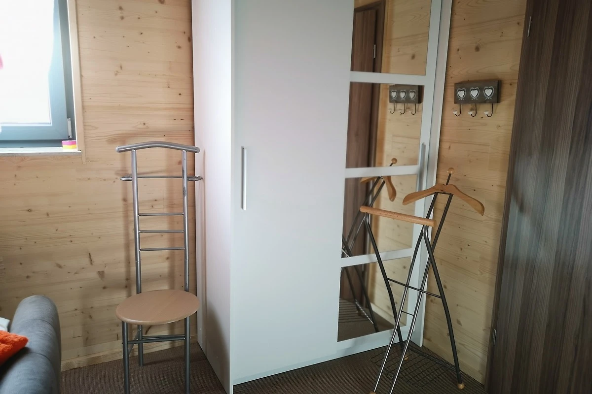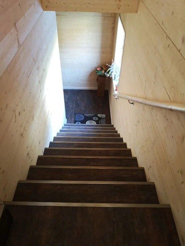 Unsere Ferienwohnung befindet sich im 1. Stock des Eigentümerwohnhauses (nicht barrierefrei) mit Platz für bis zu 3 Erwachsene. Das wohngesunde Vollholzhaus bietet einen separaten Eingang mit Zugangscode zur Ferienwohnung und liegt ruhig gelegen in einem kleinen Neubaugebiet.