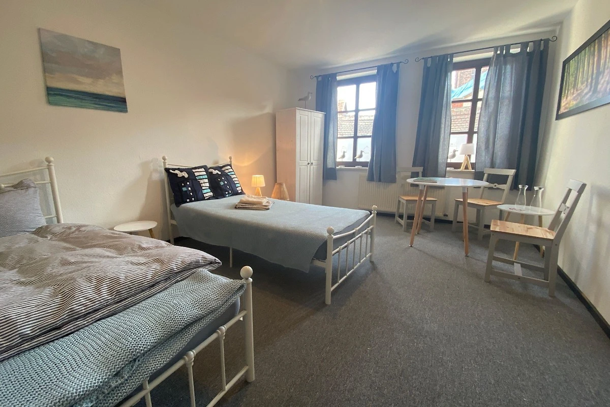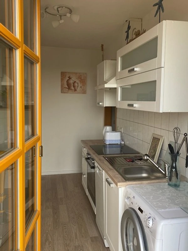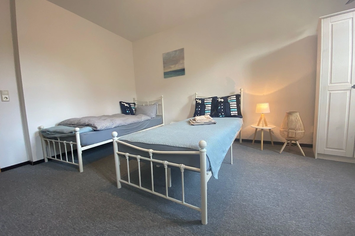 2 Zimmer mit je zwei Einzelbetten, Duschbadezimmer und voll eingerichtete Küche mit Backofen und Waschmaschine. WLAN vorhanden.