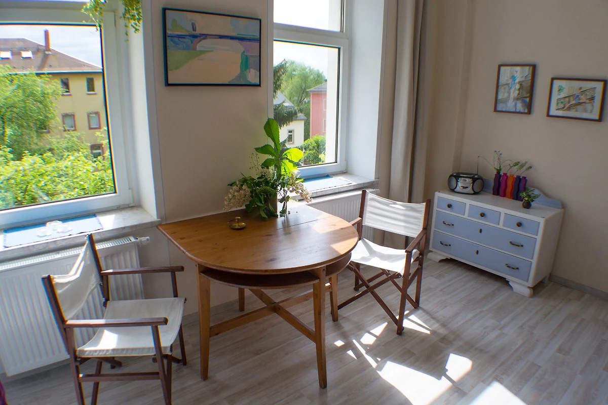 Wem der Sinn nach einem grösseren Fluss, als der Priessnitz steht, der sollte sich zu den Elbwiesen begeben, wo man schön radfahren, spazieren und Inline skaten kann. Schlendern Sie in Richtung Blaues Wunder und Biergärten! Oder aber in Richtung Altstadt und schliessen Sie einen Rundgang durch die historische Innenstadt Dresdens an. Denn auch die berühmten Bauwerke, wie Semperoper, Zwinger, Rathaus, Schloss und Frauenkirche sind bei gemütlichem Tempo in einer guten halben Stunde erreicht.