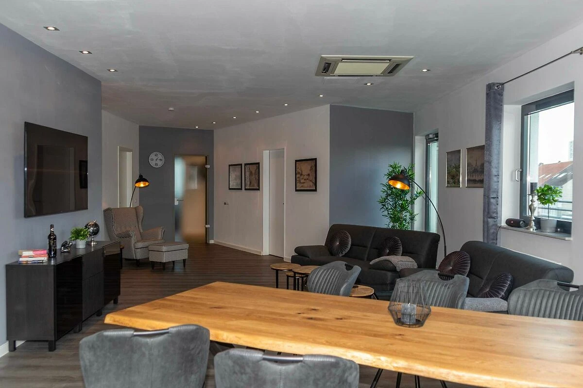 Diese Penthouse Wohnung bietet einer grossen Familie oder Ihren Firmen-Mitarbeitern viel Platz.