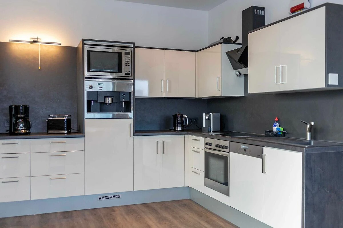 Sie möchten Grillen? Kein Problem - ein Grill steht für Sie bereit. Im Hauswirtschaftsraum befindet sich eine Waschmaschine und ein Trockner sowie ein zusätzlicher Gefrierschrank untergebracht. Mitgebrachte Fahrräder können im treppenhaus sicher untergestellt werden. Zur gesamten Penthouse-Ebene (3 Wohnungen) gehören zwei PKW-Stellplätze. Weiterer kostenfreier Parkraum befindet sich auf der gegenüberliegenden Strassenseite.
