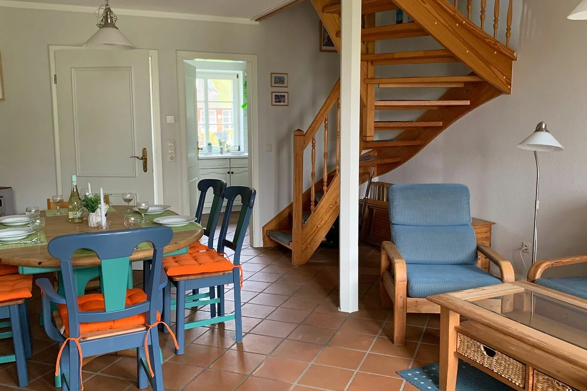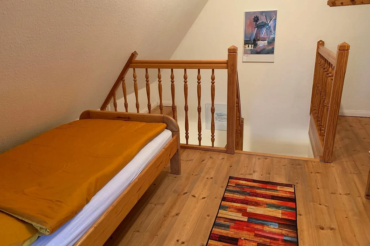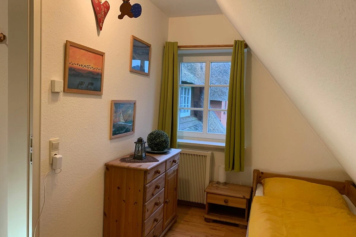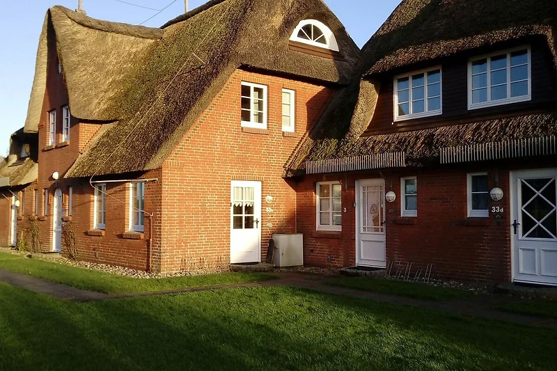 Der Friesenhof ist ein im typisch friesischen Stil erbautes Reetdachgebäude mit eigenständigen Hausteilen, gelegen im Kurzentrum Nordstrand. Der im Sommer 2022 frisch renovierte Hausteil ist ca. 90qm gross und ist für bis zu 6 Personen geeignet. Im Erdgeschoss befinden sich das geräumige Wohnzimmer mit Wohn- und Essbereich, die seperate komplett ausgestattet Einbauküche mit Spülmaschine, Mikrowelle usw. Vom Flur aus ist ein zusätzliches Gäste-WC zu erreichen, und vom Wohnzimmer aus geht es auf die möblierte zum Süden liegende Aussenterrasse mit eigenem Strandkorb. Zwei Schlafzimmer, eines mit einem Doppelbett und ein weiteres mit zwei Einzelbetten, sowie Dusche/WC befinden sich im 1. Stock, ein drittes Schlafzimmer mit ebenfalls zwei Einzelbetten im oberen als Galerie ausgebauten Giebelzimmer. Das Haus verfügt über einen Glasfaseranschluss.