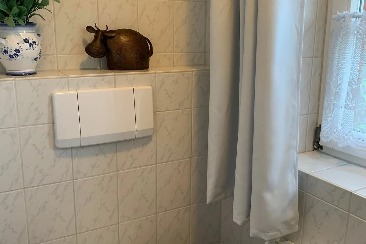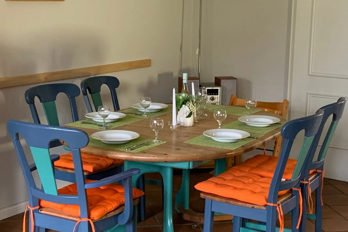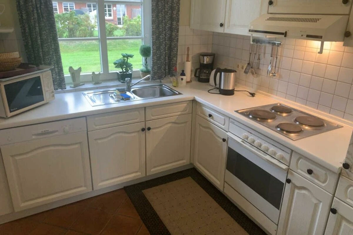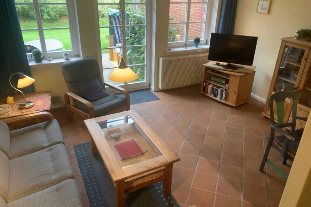 Der Friesenhof ist ein im typisch friesischen Stil erbautes Reetdachgebäude mit eigenständigen Hausteilen, gelegen im Kurzentrum Nordstrand. Der im Sommer 2022 frisch renovierte Hausteil ist ca. 90qm gross und ist für bis zu 6 Personen geeignet. Im Erdgeschoss befinden sich das geräumige Wohnzimmer mit Wohn- und Essbereich, die seperate komplett ausgestattet Einbauküche mit Spülmaschine, Mikrowelle usw. Vom Flur aus ist ein zusätzliches Gäste-WC zu erreichen, und vom Wohnzimmer aus geht es auf die möblierte zum Süden liegende Aussenterrasse mit eigenem Strandkorb. Zwei Schlafzimmer, eines mit einem Doppelbett und ein weiteres mit zwei Einzelbetten, sowie Dusche/WC befinden sich im 1. Stock, ein drittes Schlafzimmer mit ebenfalls zwei Einzelbetten im oberen als Galerie ausgebauten Giebelzimmer. Das Haus verfügt über einen Glasfaseranschluss.