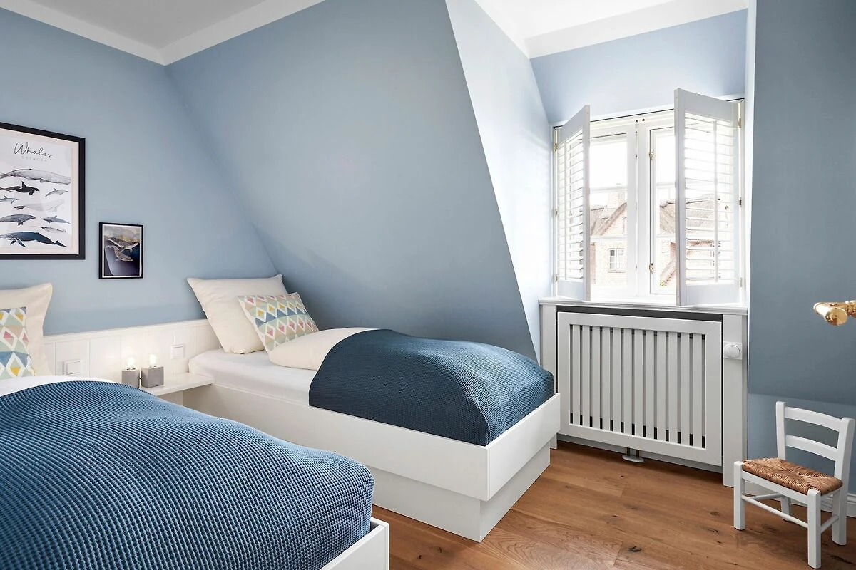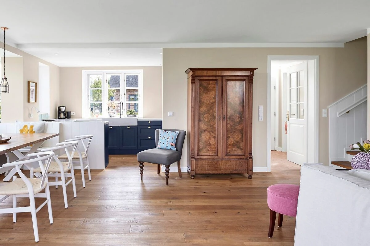 Das Haus bietet Platz für 6 Personen in drei Schlafzimmern. Der Kamin im Wohnzimmer lässt es zu jeder (Jahres-)Zeit gemütlich werden. Die Utlucht mit grossem Esstisch und die offene Küche sind perfekt für die grosse Runde mit Familie und Freunden. Im Dachgeschoss können Sie den Tag in Ruhe bei einem erholsamen Saunagang ausklingen lassen und ungestört relaxen.
