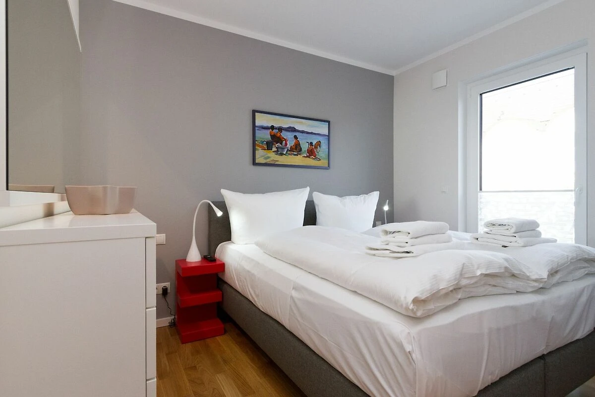 Ein Domizil für Anspruchsvolle und Geniesser! Freuen Sie sich auf ein wunderschönes Urlaubsdomizil, denn die Dünenresidenz Heringsdorf verbindet den zeitgemässen Komfort eines Neubaus mit einer strandnahen Lage. Eine Tiefgarage (max. Einfahrtshöhe 1,93 m) und ein Aufzug im Haus sind hier selbstverständlich. Helle, geschmackvoll designte 2- und 3-Raum-Appartements mit Balkonen oder Terrassen laden zum Erholen ein. Die Dachgeschosswohnungen überzeugen mit grosszügigen Dachterrassen und schönen Ausblicken. Aus einigen Wohnungen kann man sogar durch die Dünenbepflanzung das Meer schimmern sehen. Als besonderes Highlight verfügen die Wohnungen über eine Sauna und/oder einen Elektrokamin, der per Knopfdruck Gemütlichkeit zaubert. Ausserdem sind alle Appartements mit Fussbodenheizung und elektrische Rollläden ausgestattet.