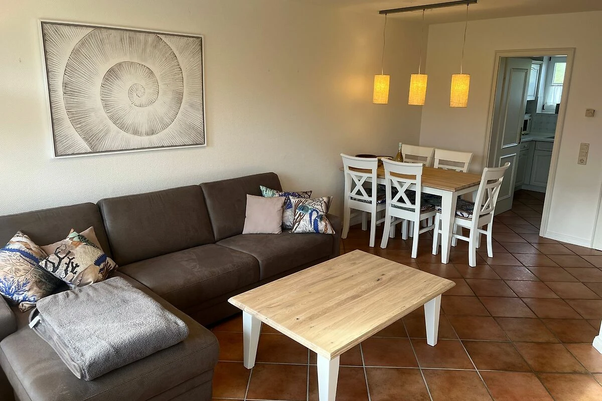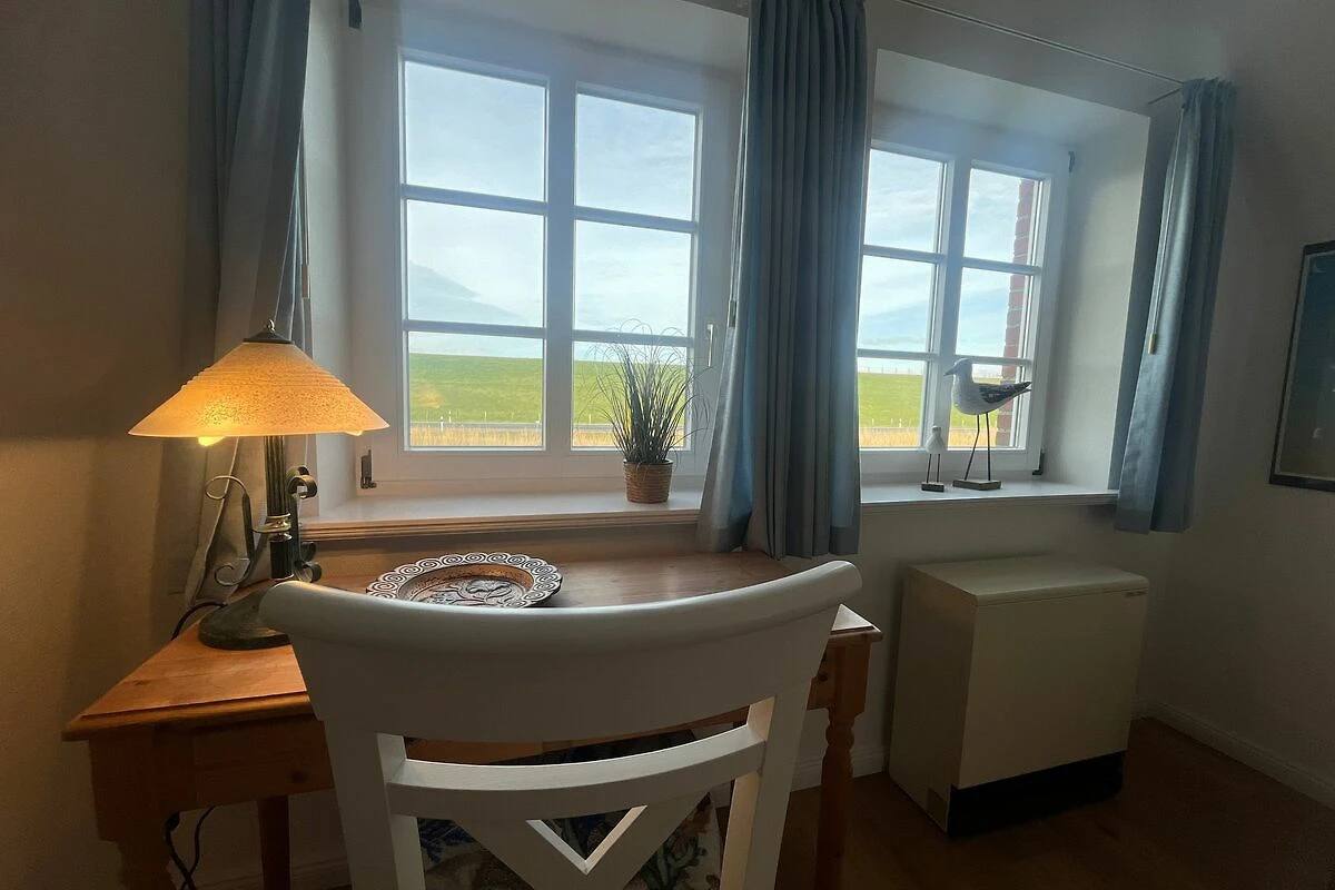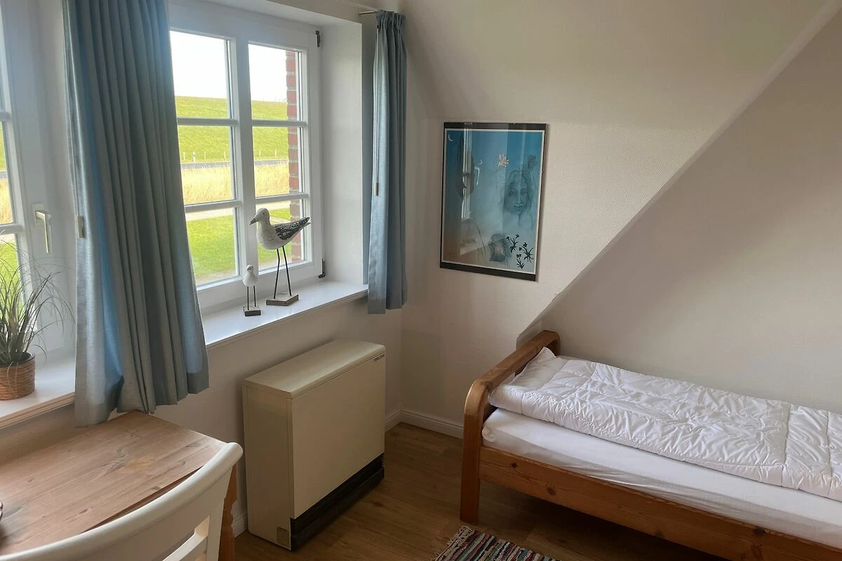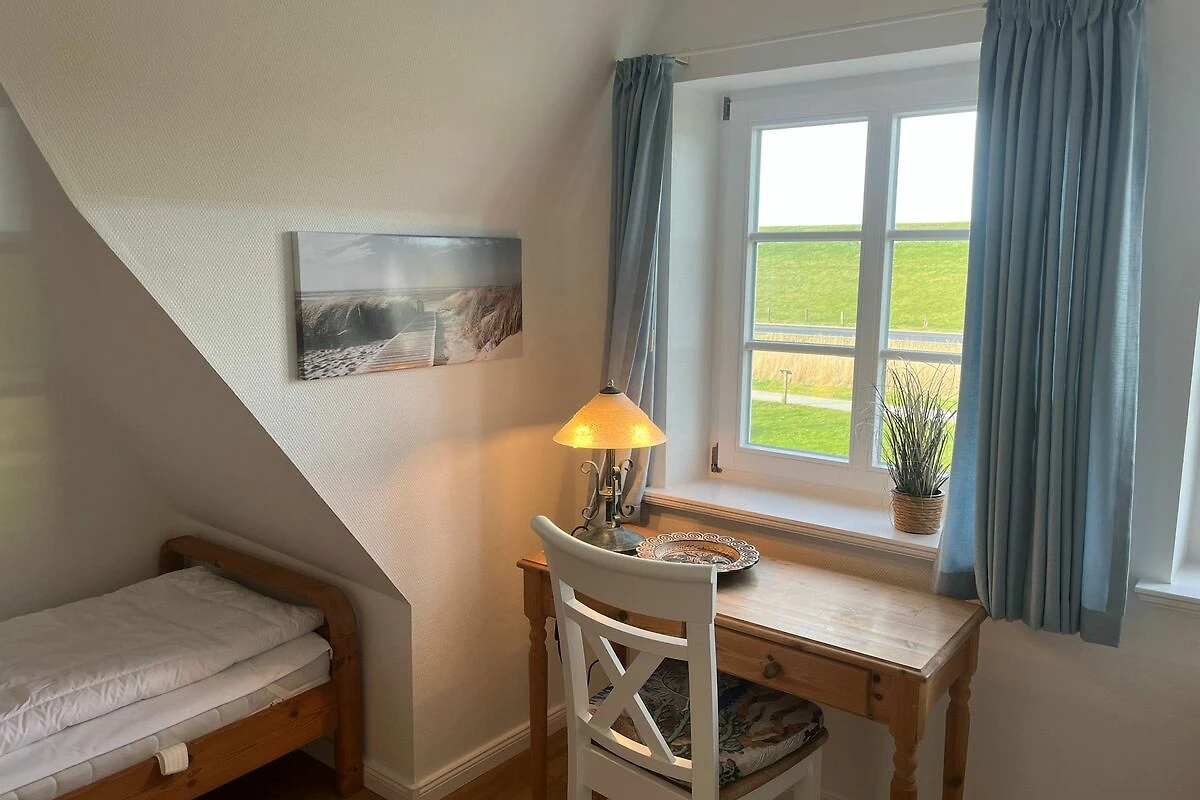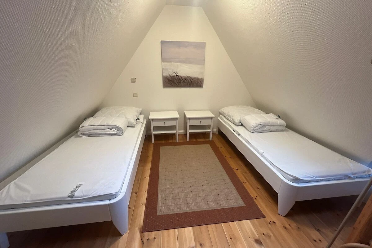 Der Friesenhof ist ein im typischen friesischen Stil erbautes Reetdachgebäude mit eigenständigen Hausteilen, gelegen im Kurzentrum Nordstrand. Der Hausteil Uttied ist ca. 90qm gross und ist für 2 bis 6 Personen geeignet. Im Erdgeschoss befinden sich das geräumige Wohnzimmer mit separatem Wohn- und Essbereich, die Küche mit einer komplett ausgestatteten Einbauküche mit Spülmaschine, Mikrowelle usw. Vom Flur aus ist ein zusätzliches Gäste-WC zu erreichen, und vom Wohnzimmer aus geht es auf die möblierte zum Süden liegende Aussenterrasse mit eigenem Strandkorb. Zwei Schlafzimmer, eines mit einem Doppelbett und ein weiteres mit zwei Einzelbetten, sowie Dusche/WC befinden sich im 1. Stock, ein drittes Schlafzimmer mit zwei Einzelbetten in dem, als Galerie ausgebauten, Giebelzimmer. Das Haus verfügt über einen Glasfaseranschluss.