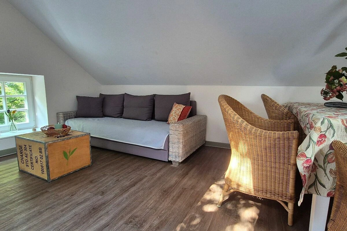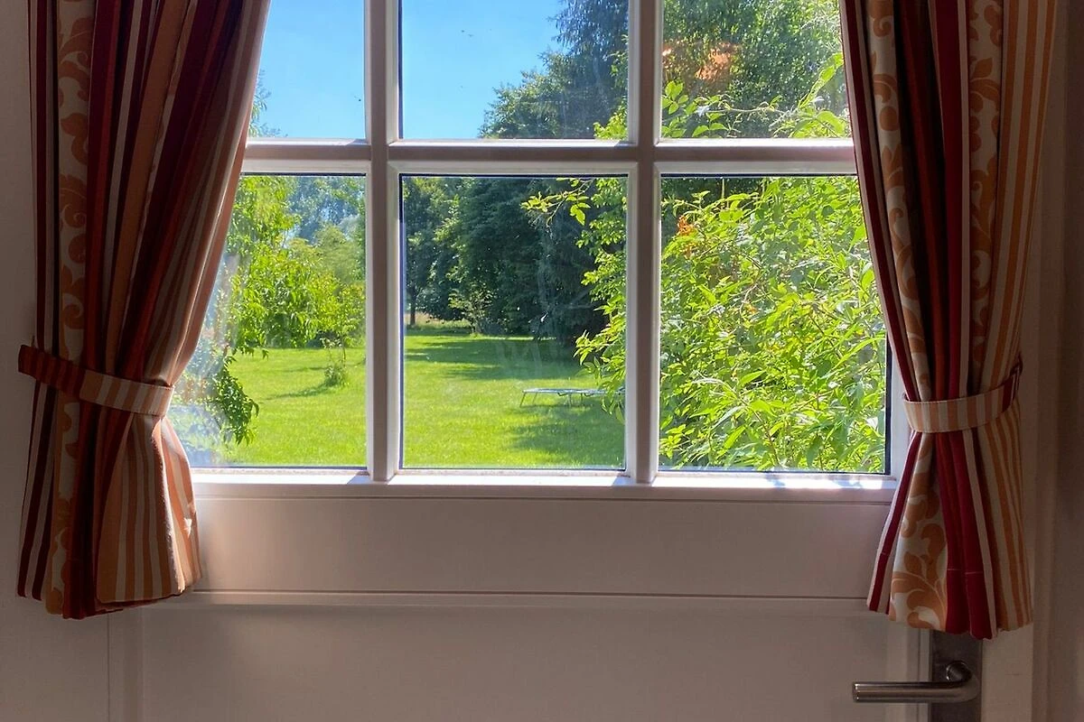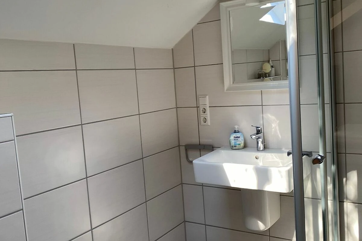 Unser gemütlich eingerichtetes Ferienzimmer verfügt über ein modernes Bad und ist direkt vom Garten aus zu betreten.
