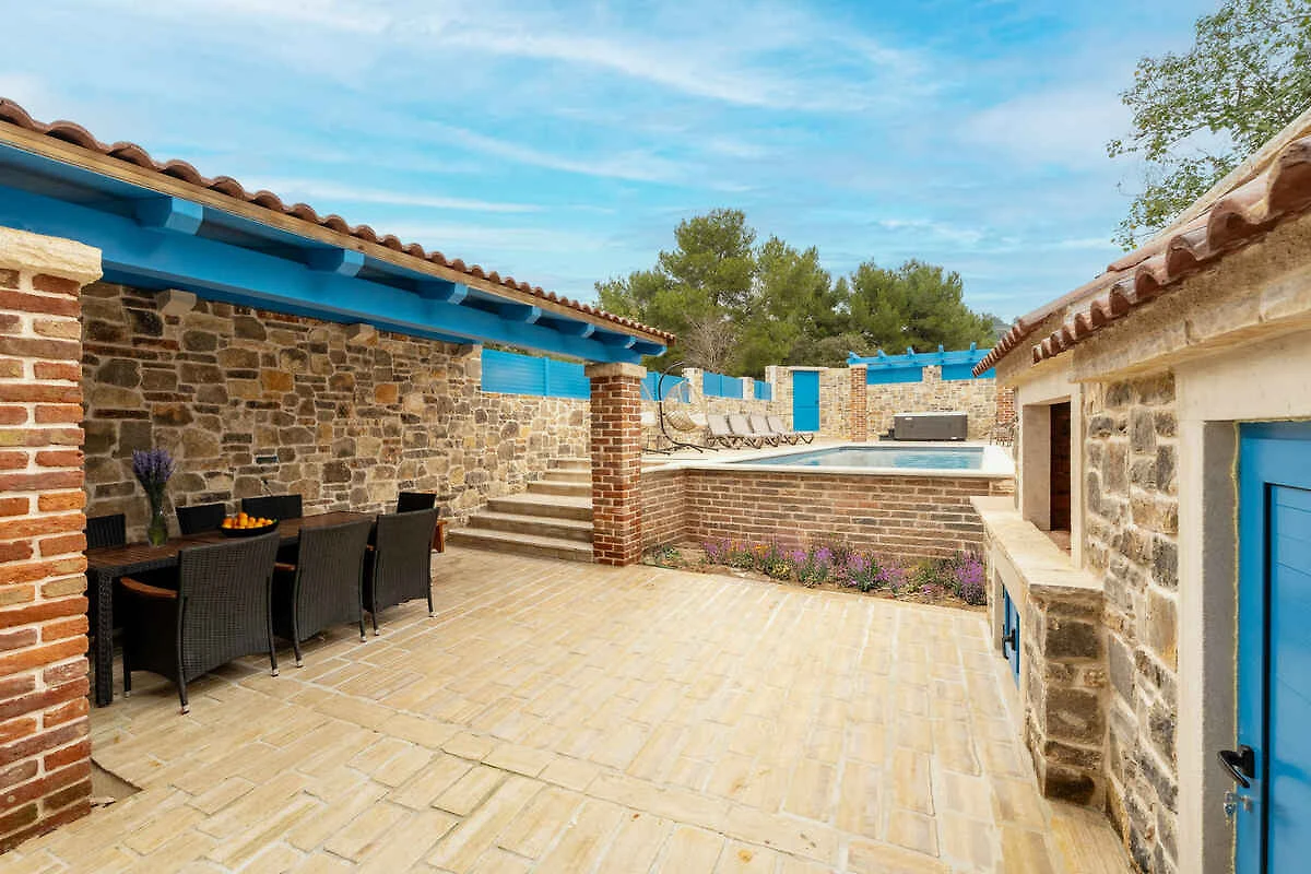 Sukošan. Das Ferienhaus befindet sich auf einem 100 qm grossen, geschlossenen Grundstück mit Blumen und Sträuchern. Der Vermieter wohnt nicht im Haus oder auf dem Grundstück. Die Zufahrt erfolgt über eine Nebenstrasse (asphaltiert). Parkplatz auf dem Grundstück.
