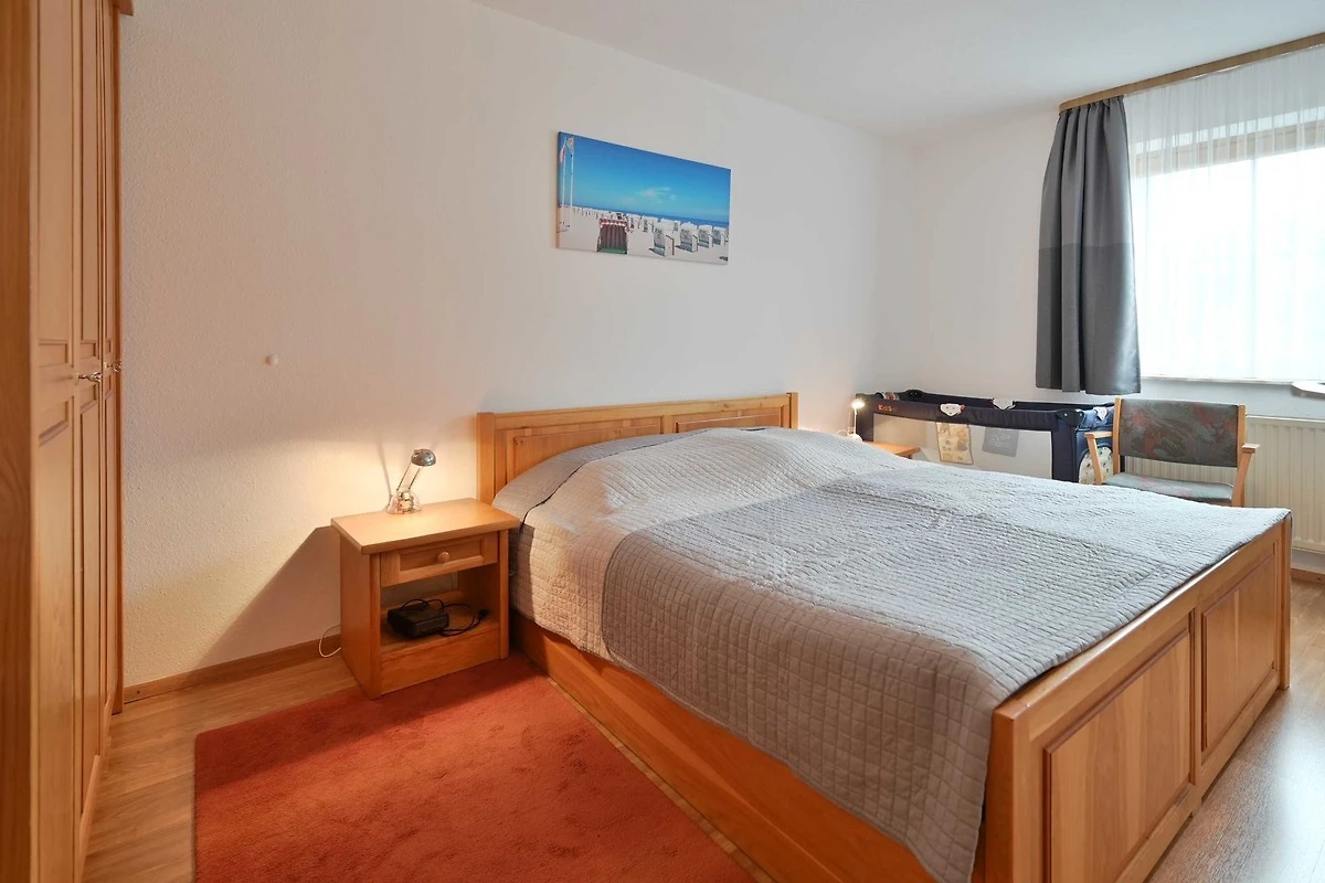 Zudem gehören zur Fewo ein separates Schlafzimmer mit Doppelbett (200 x 200cm), Nachttischen, Kleiderschrank und einem feststehenden Kinderbett