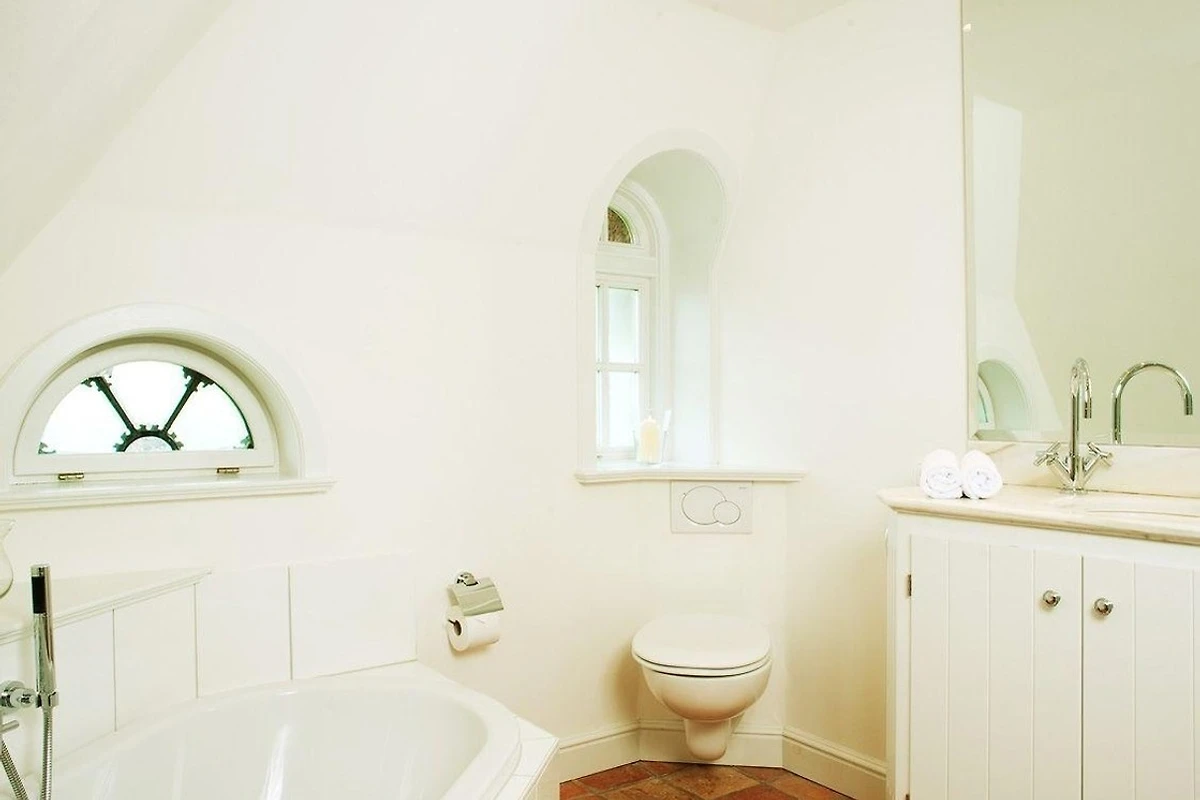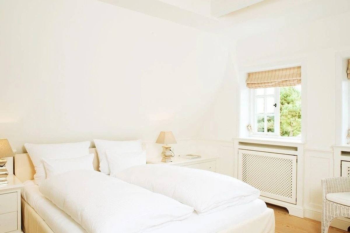 Am Ende einer Stichstrasse im Kampener Osten, umgeben von einem eingewachsenen Garten, finden Sie das Endhausteil East Side. Ein dunkelroter Küchentresen ist der Hingucker im offenen Wohn-/Essbereich mit Kachelofen, grossem Esstisch und kuscheliger Sofaecke samt Smart-TV. Von hier hat man ausserdem Zugang zur Frühstücksterrasse gen Südosten. Hier stimmt jedes Detail: Holzdielen, helle Möbel, das Lichtdesign und die Farben. Im Obergeschoss finden Sie eine kleine, offene Arbeitsgalerie, sowie ein grosses Doppelschlafzimmer mit Queensizebett und TV, sowie ein schickes Badezimmer mit Dusche und Badewanne. Im hellen Untergeschoss befindet sich ein Doppelschlafzimmer mit Smart-TV und Duschbad en suite. Ein weiteres Doppelzimmer, sowie das separate Wannenbad mit Waschmaschine und Trockner sind über den Flur zu erreichen. Das gesamte Haus ist mit edlem Holzfussboden und Natursteinfliesen ausgestattet.