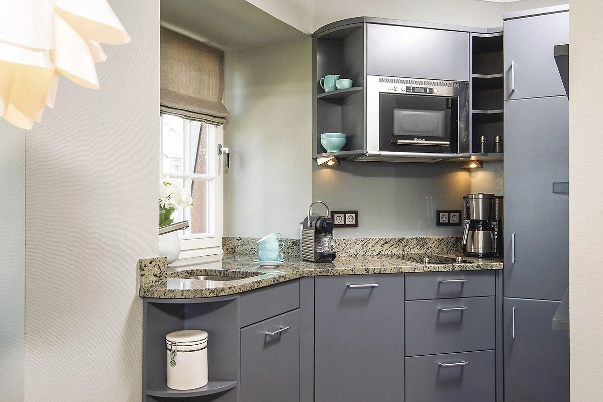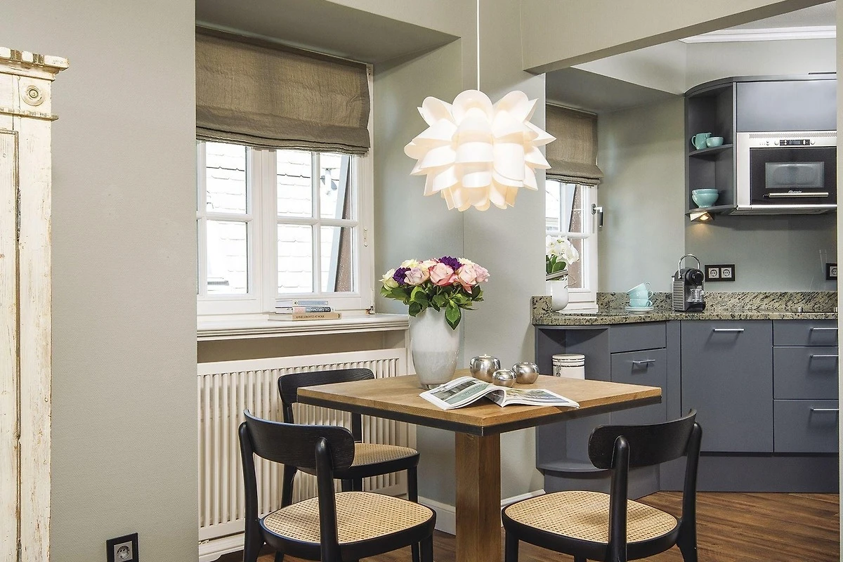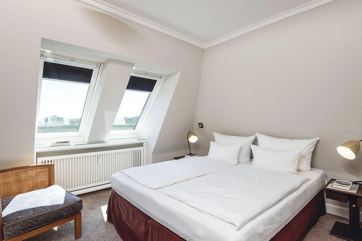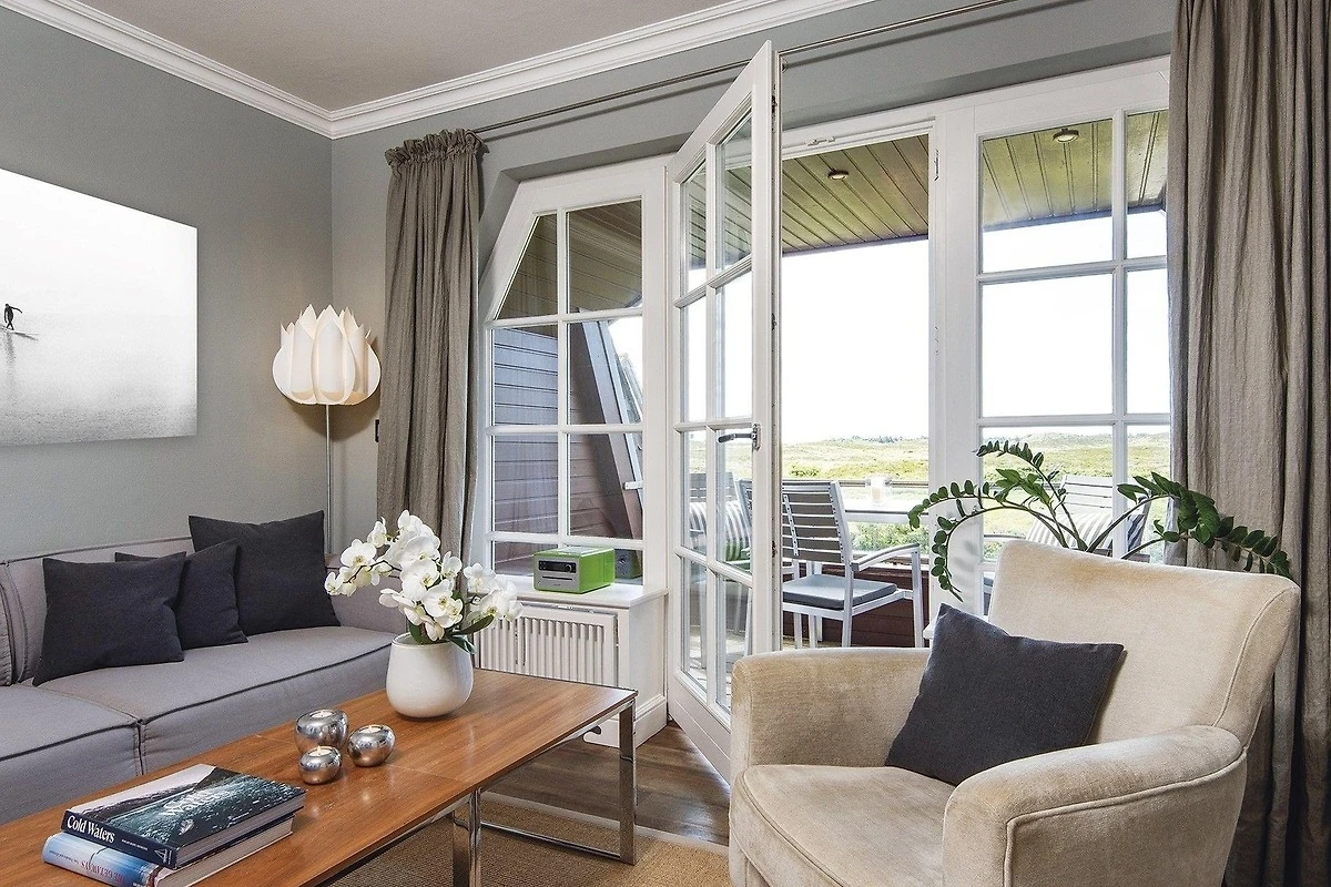 Ein frisch renoviertes, elegantes Quartier für Drei erwartet Sie hier im 1. Obergeschoss eines gediegenen Appartementhauses auf der Kurhausstrasse. Durch einen kleinen Flur gelangen Sie direkt in den Wohnbereich mit schönem Ecksofa, offener Küche und Esstisch in eleganten Grau- und Sandtönen. Ebenso gelangen Sie von hier auf den überdachten Balkon mit herrlich weitem Blick nach Süden über die Uwe Düne hinweg. Über eine Treppe vom Flur aus finden Sie im 2. Obergeschoss mit flauschigem Teppichboden ein Doppelschlafzimmer mit 1,60m breitem Bett und ein gemütliches Einzelzimmer, sowie ein Duschbad. Sie surfen hier mit bis zu 250 MBit/s. Ein Quartier in perfekter Kampen-Lage, wohnlich und elegant eingerichtet, für schöne Urlaubstage bei jedem Wetter.