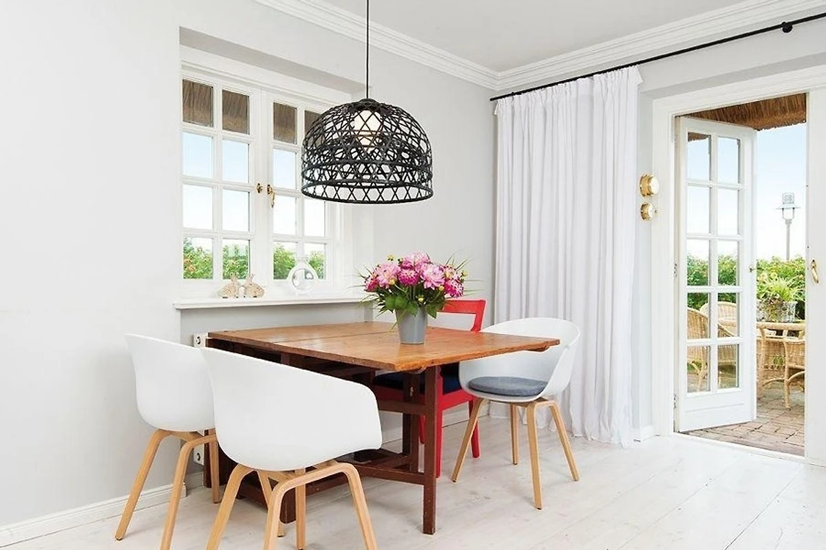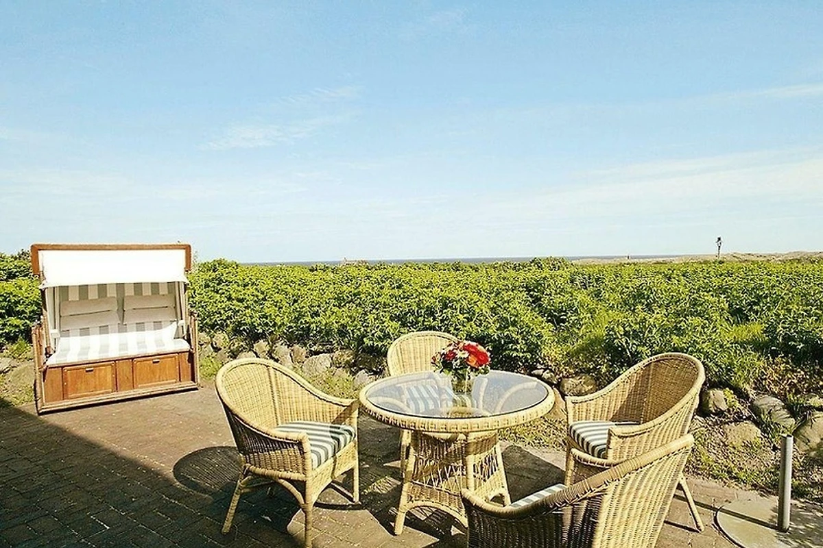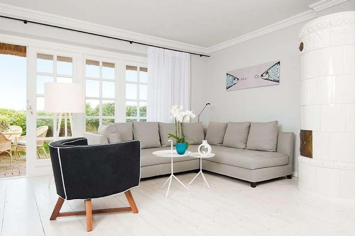 Diese schmucke Ferienwohnung unter Reet verwöhnt mit Weitblick auf Heide, Nordsee und Wattenmeer. Entsprechend kurz ist der Weg an den wunderschön weissen Sandstrand von Kampen, unweit der berühmten Sturmhaube. Das Erdgeschoss verwöhnt den Blick mit breiten Holzdielen im geräumigen Wohn- Esszimmer und ein Kachelofen sorgt für Gemütlichkeit. Die Terrasse mit Meerblick, die offene Einbauküche in puristischem Design, liebevolle Dekoration und ein Gäste-WC machen diese Etage komplett. Zwei hyggelige Doppelschlafzimmer im Untergeschoss bieten Platz für bis zu Vier, ausserdem finden Sie auf dieser Etage ein zeitlos stilvolles Badezimmer mit Wanne und Dusche.