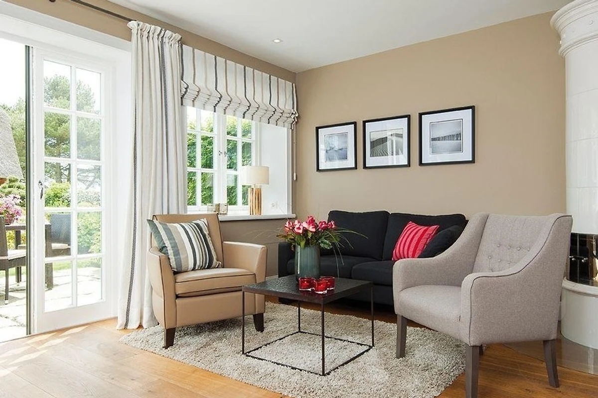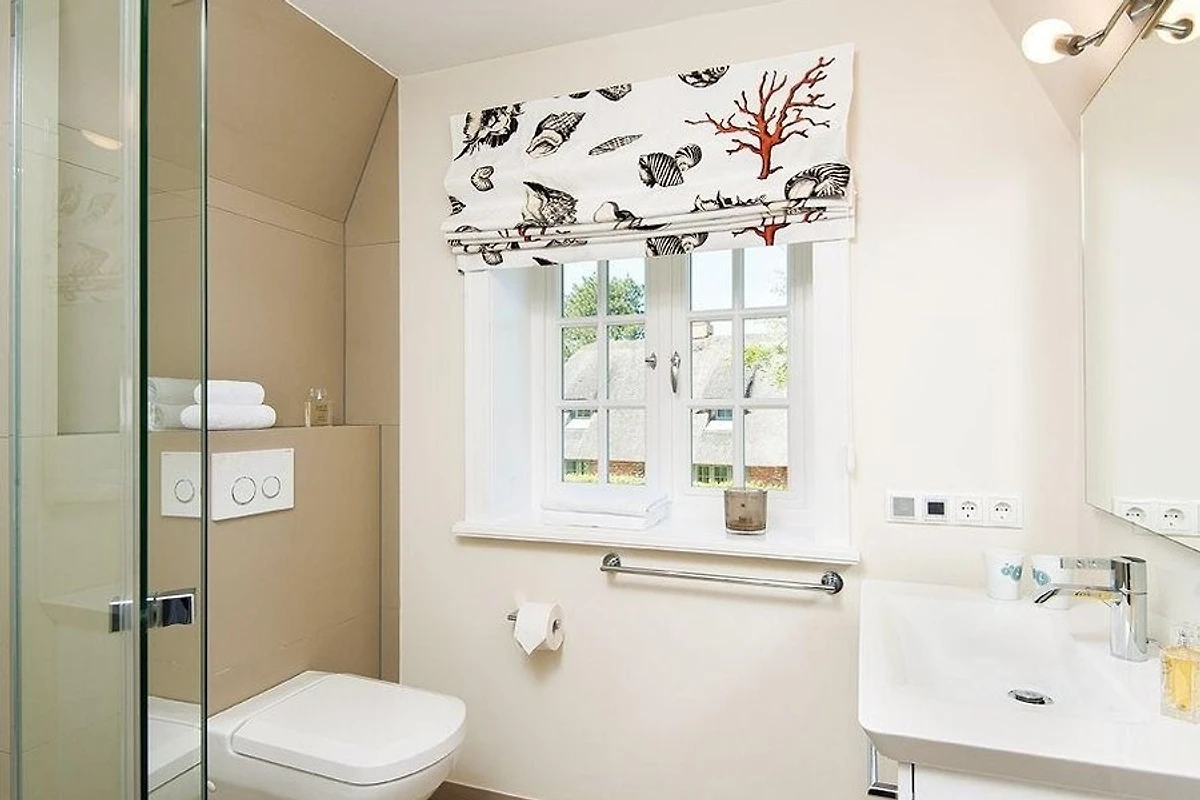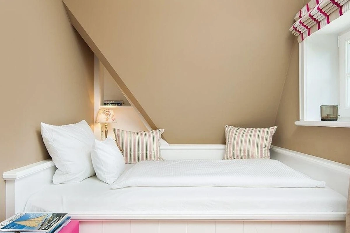 Diese Haushälfte befindet sich in ruhiger Lage unmittelbar am Naturschutzgebiet Braderuper Heide. Dennoch gelangen Sie fussläufig schnell ins Zentrum von Kampen. Dieses Quartier erwartet seine Gäste mit einer Vielzahl von Wohlfühl-Faktoren. Der grosszügige Garten mit Terrasse und separatem Strandkorbplatz lädt zum Verweilen ein. Das Ambiente auf den drei Ebenen des Hauses erfreut durch liebevoll ausgesuchte Ausstattung, Dekoration und den modern interpretierten Landhaus Stil. Im Erdgeschoss befindet sich ein helles Wohnzimmer mit einem antiken, nordischen Kachelofen, einer offene Küche und ein Gäste WC. Im Obergeschoss erwartet Sie ein Schlafzimmer mit einem grosszügigen Einzelbett, sowie ein Doppelschlafzimmer mit Duschbad und Aussicht auf das Wattenmeer. Das Untergeschoss ist ausgestattet mit einem weiteren Doppelschlafzimmer, einem Duschbad und einer behaglichen Sauna, samt Dusche und Badewanne. Ein rundum kuscheliges, charismatisches Haus zum Wohlfühlen.