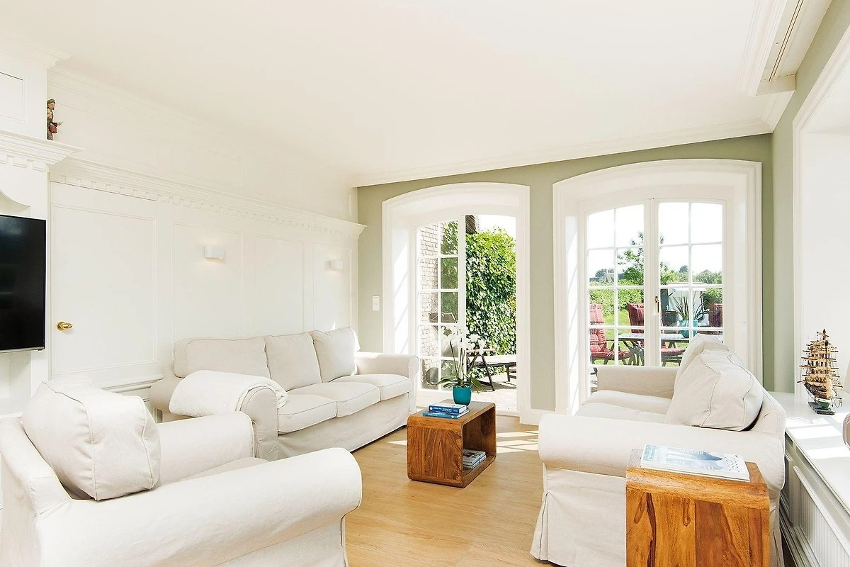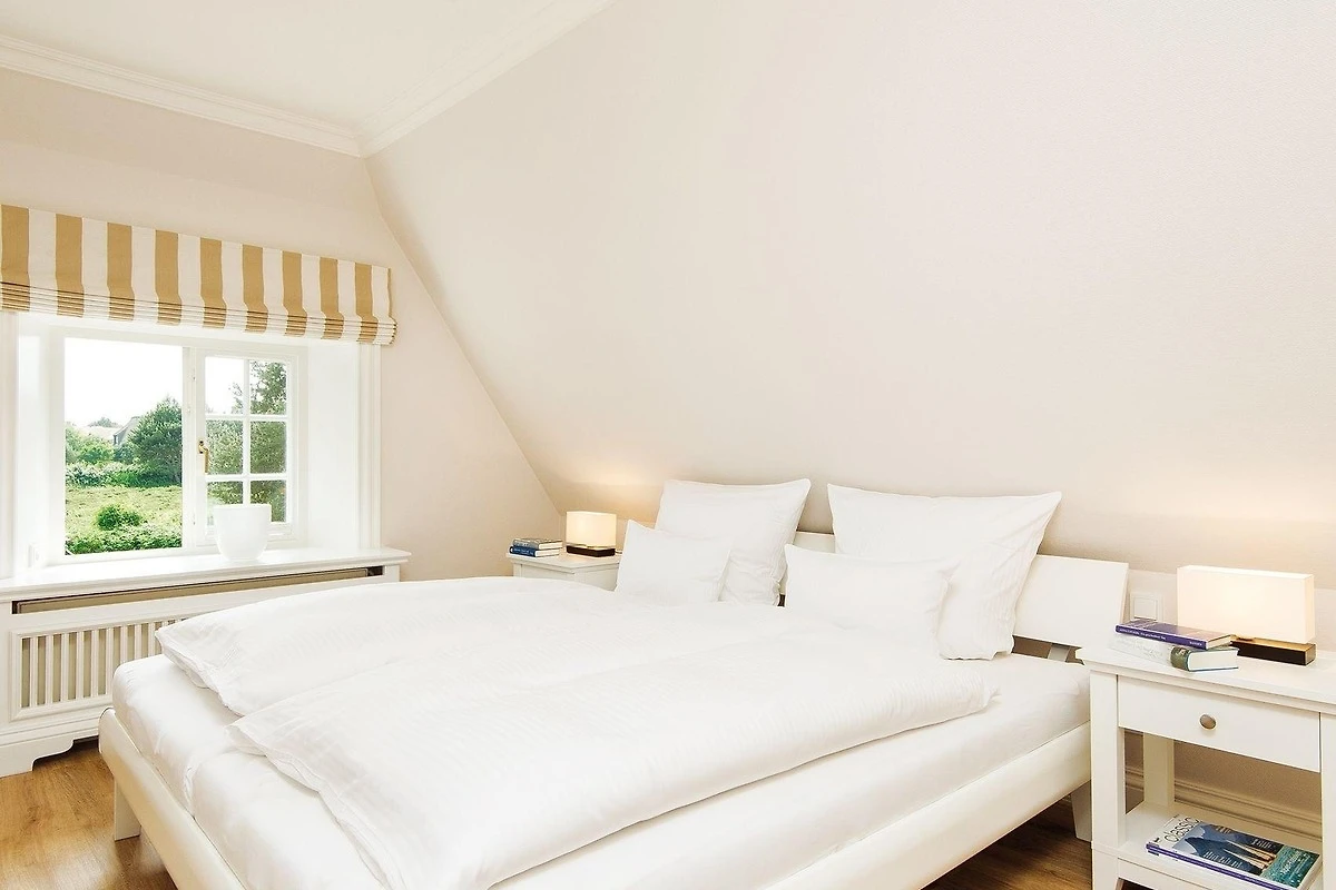 In ruhiger Lage, im Heidewinkel, liegt dieses grosszügige Quartier in einem wunderschönen, grossen Garten. Über einen kleinen Flur mit Gäste-WC gelangen Sie in den Wohnbereich mit offener Küche und grossem Esstisch für gesellige Runden. Der Wohnbereich besticht durch seine bodentiefen Sprossenfenster, welche auch bei Nordseewetter viel Licht hereinlassen. Sie haben die Möglichkeit über zwei Terrassentüren in den grosszügigen Garten zu gelangen. Ein Strandkorb und Sonnenliegen laden zum sonnigen Verweilen ein. Im Obergeschoss befinden sich ein Doppelschlafzimmer mit TV und Gartenblick gen Süden und ein Schlafzimmer mit zwei grosszügigen Einzelbetten, sowie ein modernes Duschbad. Im Untergeschoss erwarten Sie zwei Doppelschlafzimmer und ein grosses, modernes Duschbad. Eine Wohlfühloase für kleine und grosse Familien.