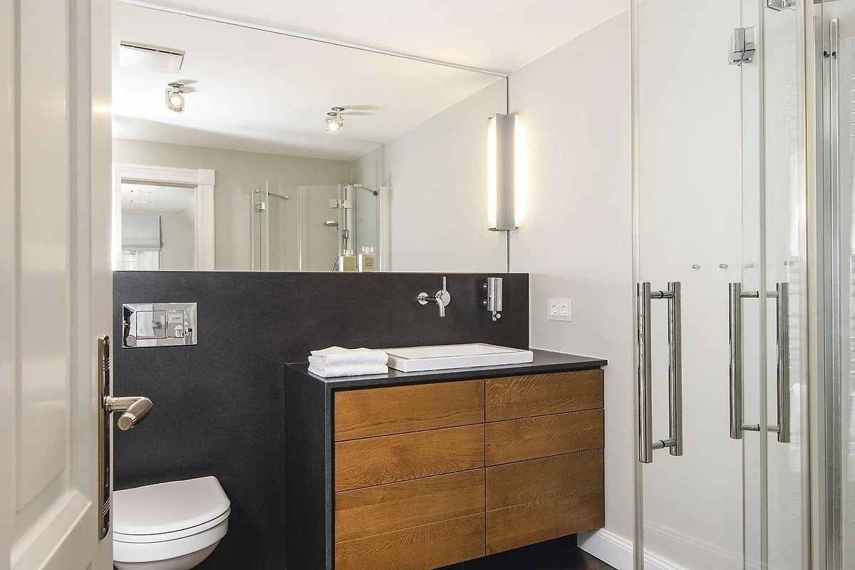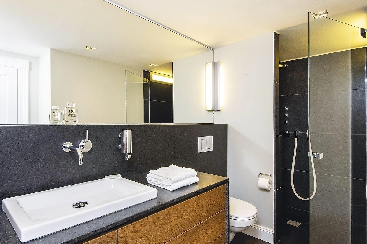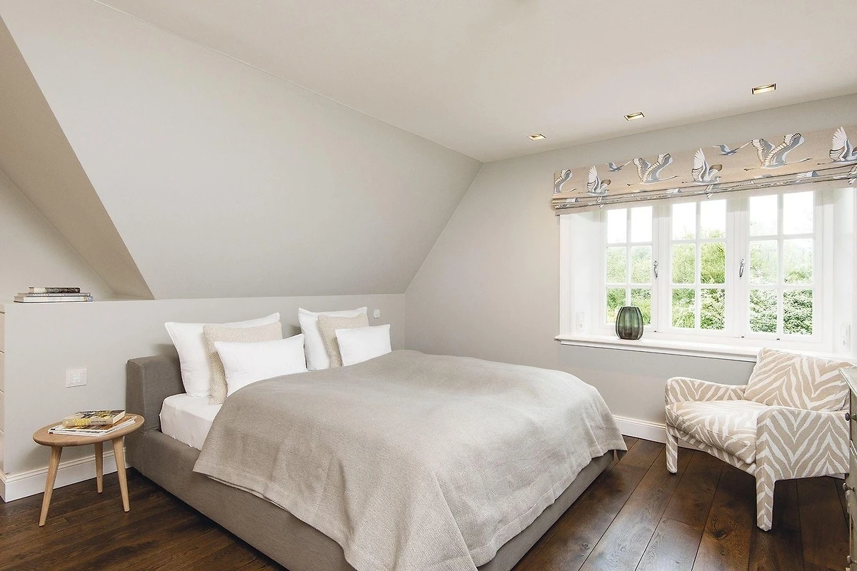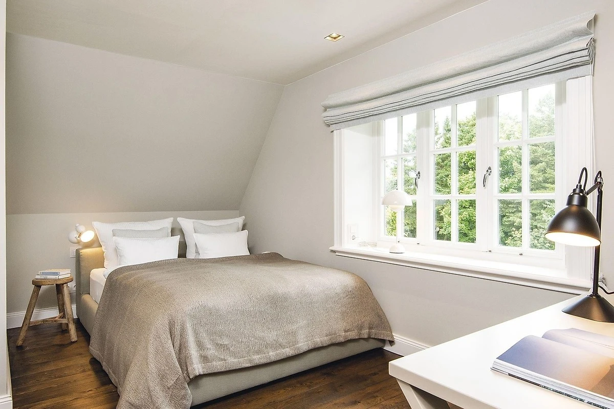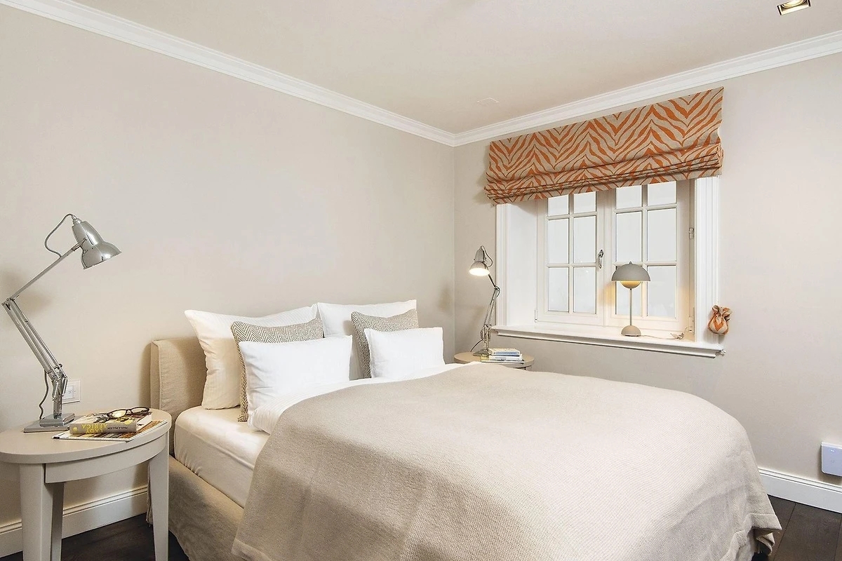 Das exklusive Hausteil mit Einzelhauscharakter befindet sich in ruhiger Lage im Hans-Hansen-Wai. Das Quartier besticht durch eine überaus hochwertige Einrichtung und seine hellen lichtdurchfluteten Räume, welche mit einem rustikalen Eichenholz-Schlossdielenboden ausgelegt sind. Im Erdgeschoss überzeugt das Hygge Hüs mit einem wundervollen Wohn-Essbereich. Über diesen geht es auch direkt in die komfortable und bestens ausgestattete Küche mit einer weiteren Sitzecke. Von hier gelangt man auch auf die kleine Frühstücksterrasse, wo man seinen Kaffee in schönster Morgensonne geniessen kann. Im Obergeschoss finden Sie zwei grosszügige Doppelschlafzimmer, sowie je ein geräumiges Wannen- und Duschbad. Zwei weitere Doppelschlafzimmer finden Sie im Untergeschoss, ausserdem ein schönes Duschbad. Dieses Quartier ist frisch renoviert, exklusiv ausgestattet und mit viel Stil eingerichtet worden. Geniessen Sie die Ruhe im eingewachsenen Garten mit einer grosszügigen Westterrasse.