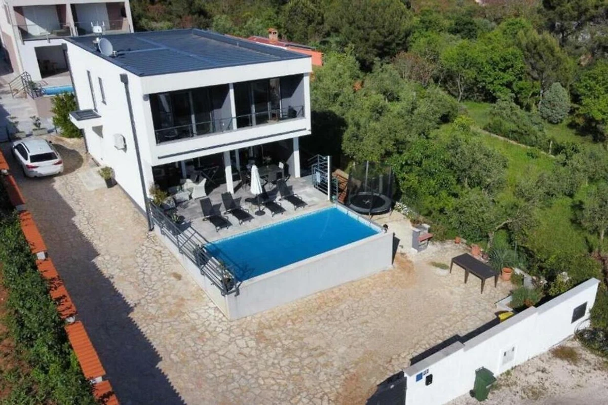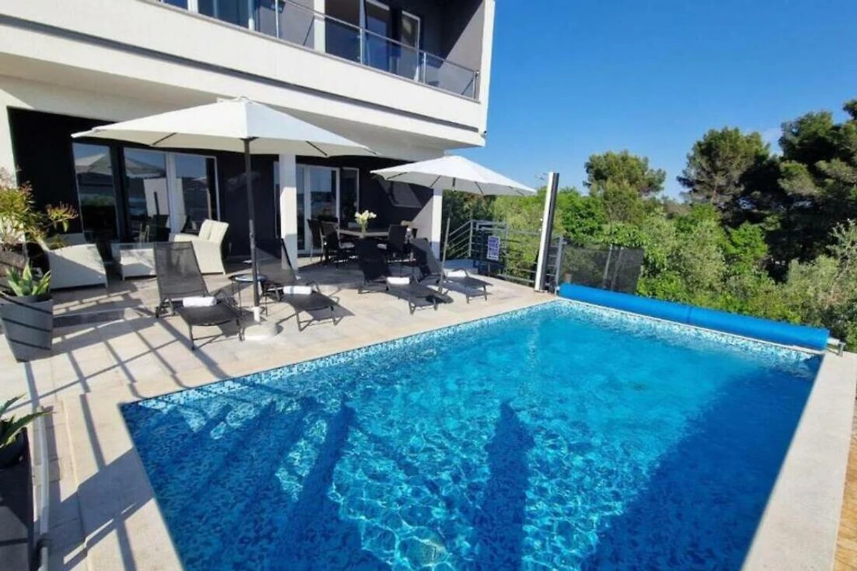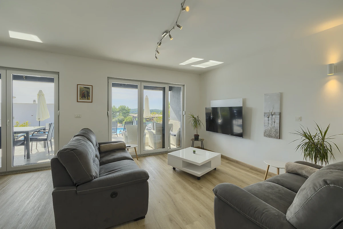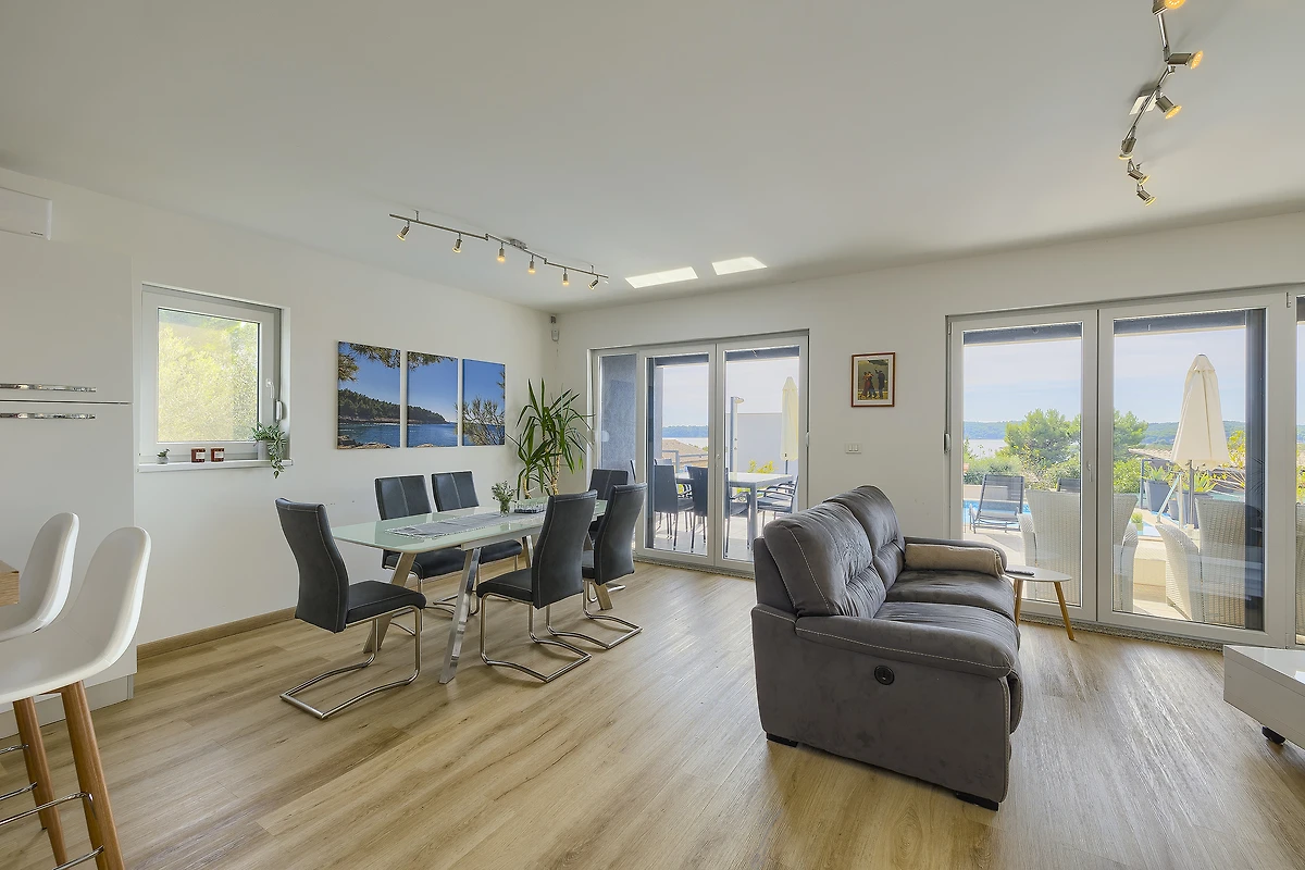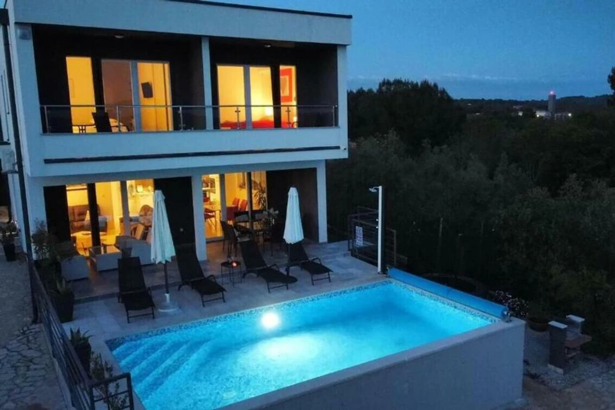 Villa Pura Vida in Pomer ist ein schönes modernes Ferienhaus mit Pool und Meerblick.