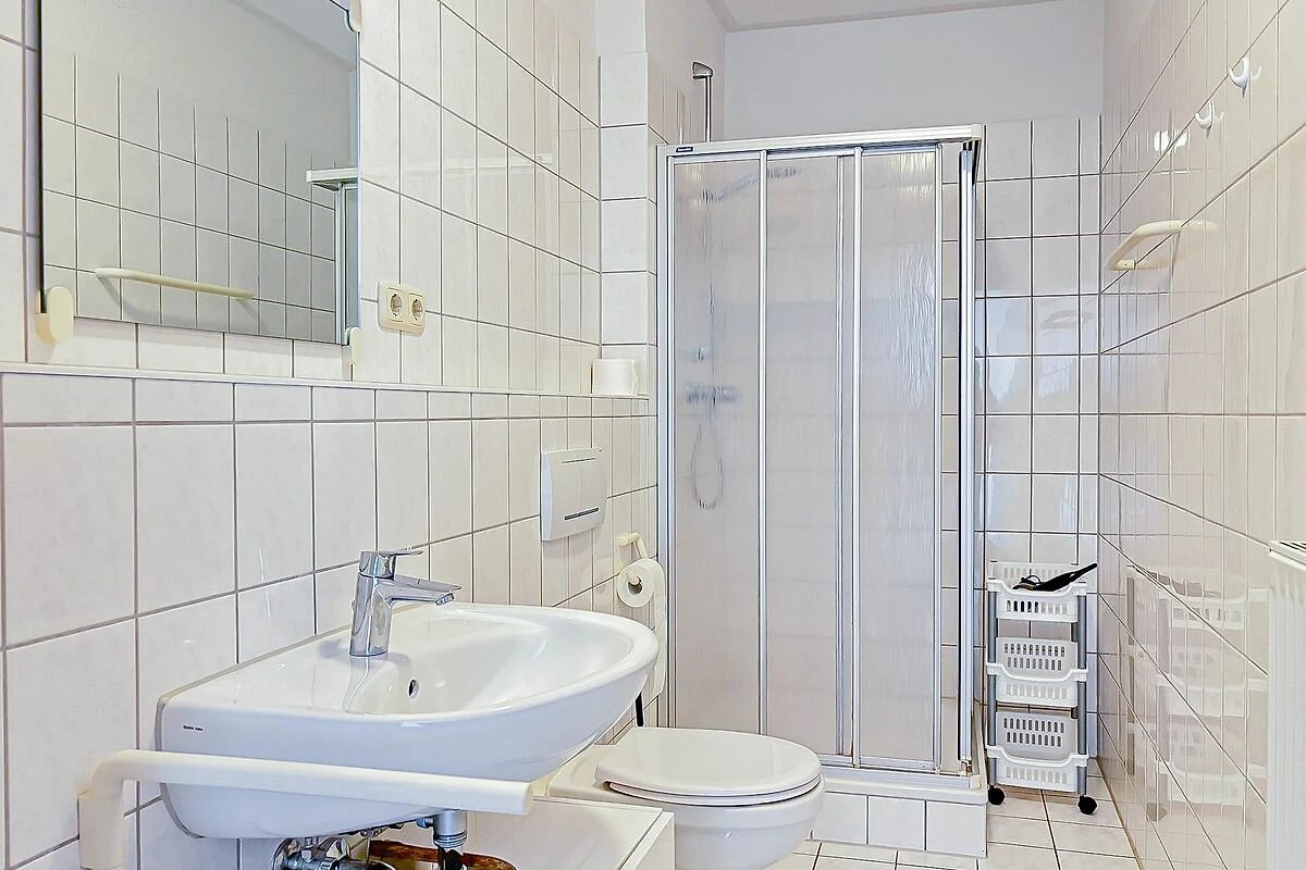 Ihre Urlaubsgarderobe können Sie in dem Kleiderschrank im Flur unterbringen. Der Boden der Ferienwohnung ist mit Designbelag ausgelegt. Das Duschbad ist gefliest. In dieser Nichtraucherwohnung sind Haustiere nicht erlaubt.
