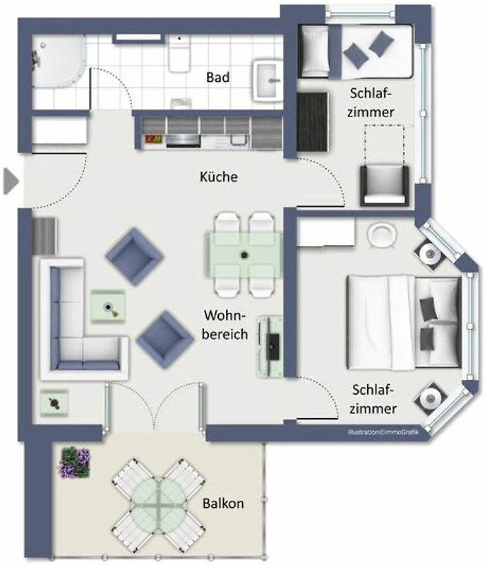 Die angrenzende und im Wohnraum integrierte Küchenzeile ist für dich mit einem Herd mit Backofen und einem 4-Platten-Cerankochfeld, einem Kühlschrank mit Gefrierfach, einem Geschirrspüler und einer Mikrowelle voll ausgestattet. Nützliche Kleingeräte wie ein Toaster, eine Kaffeemaschine und ein Wasserkocher komplettieren die Kücheneinrichtung.