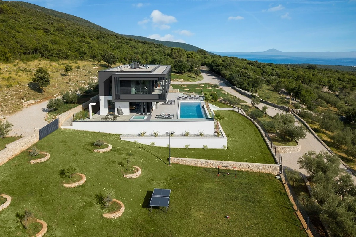 Vom höchsten Punkt des Dorfes, bietet das Anwesen einen Panoramaausblick auf Teile der Kvarner Bucht, den Süden Istriens, die Inseln Lošinj, Unije und Susak, die Halbinsel Ubas, die Bucht von Raša und Teile des Inneren von Istrien.
